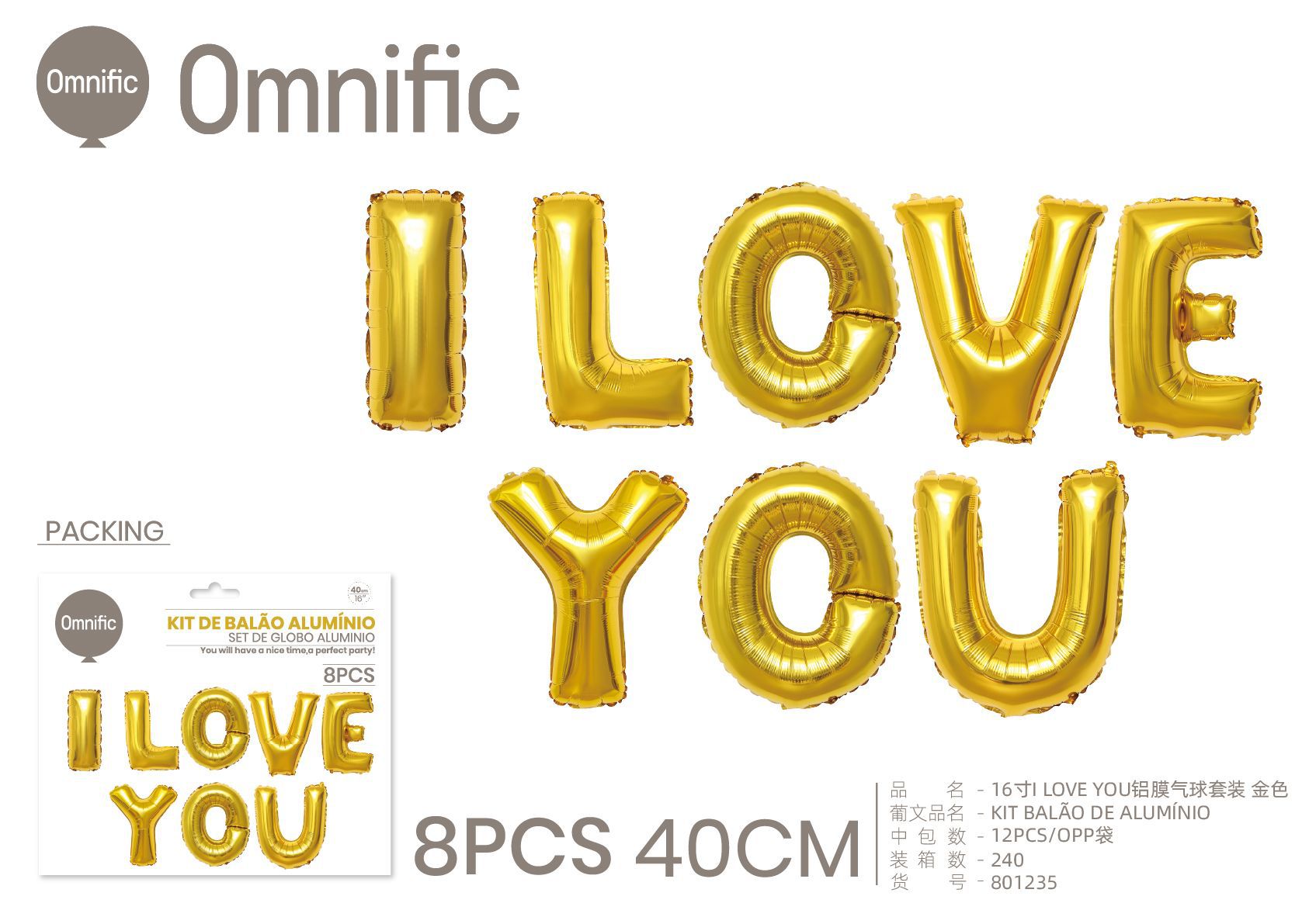 C.B. 5600936801280KIT BALAO DE ALUMINIO AMO-TE 16P DOURADO