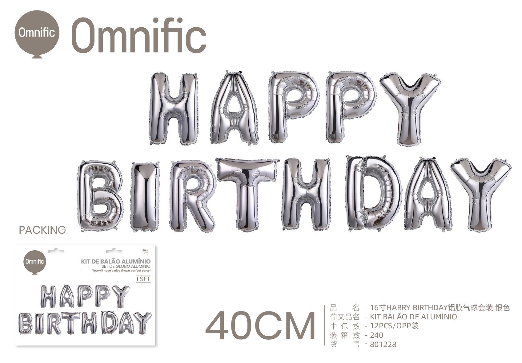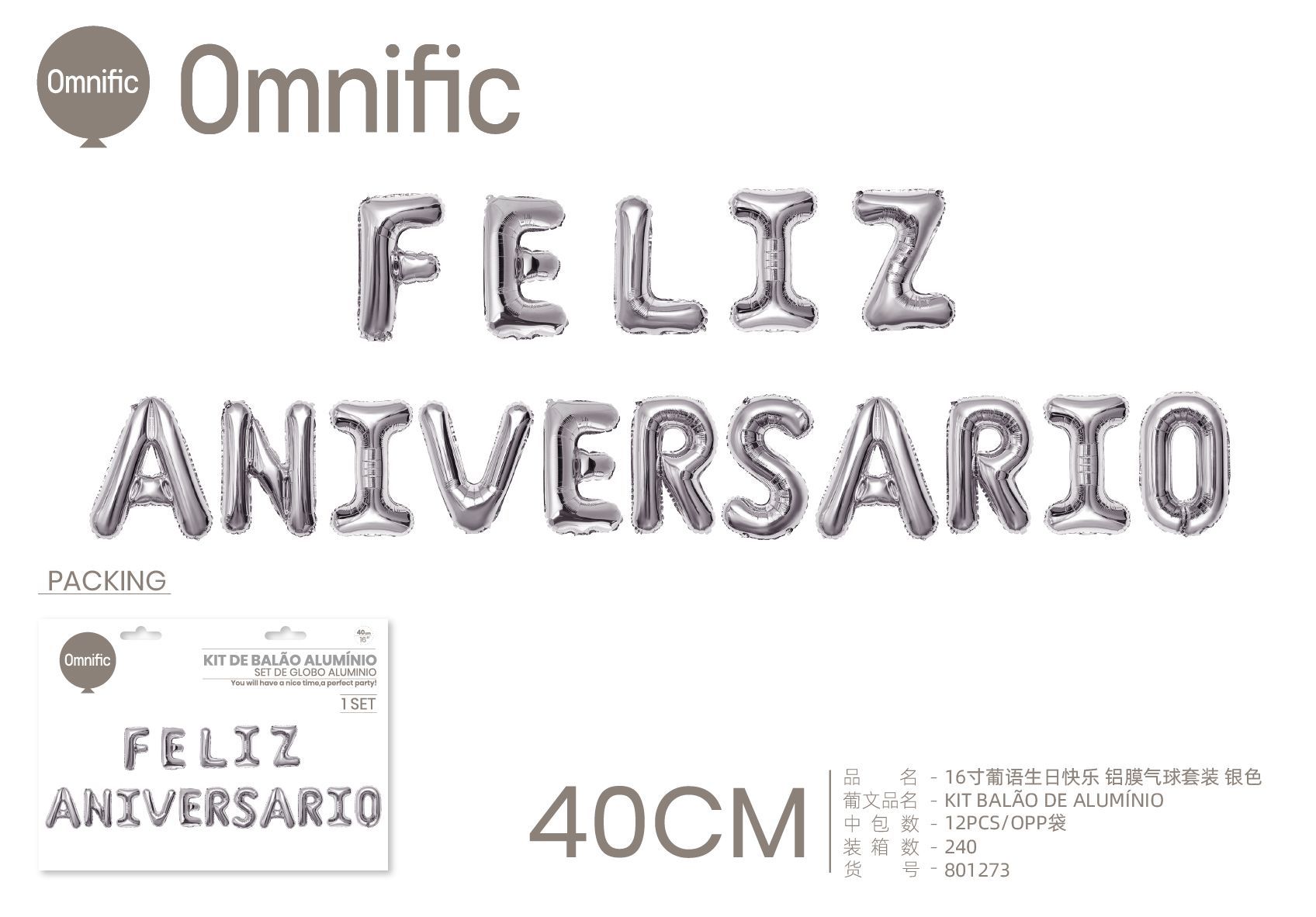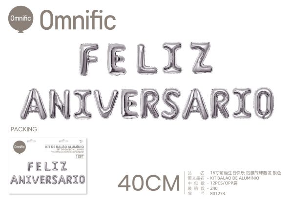 C.B. 5600936801273KIT BALAO DE ALUMINIO 16P F.ANIVERSARIO PRATEADO