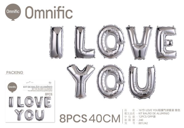 C.B. 5600936801242KIT BALAO DE ALUMINIO I LOVE YOU 16P PRATEADO