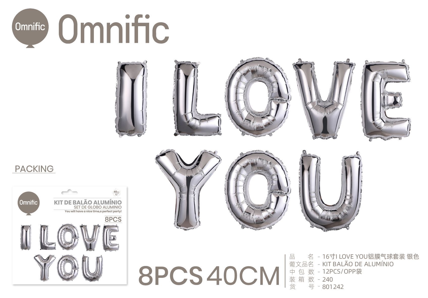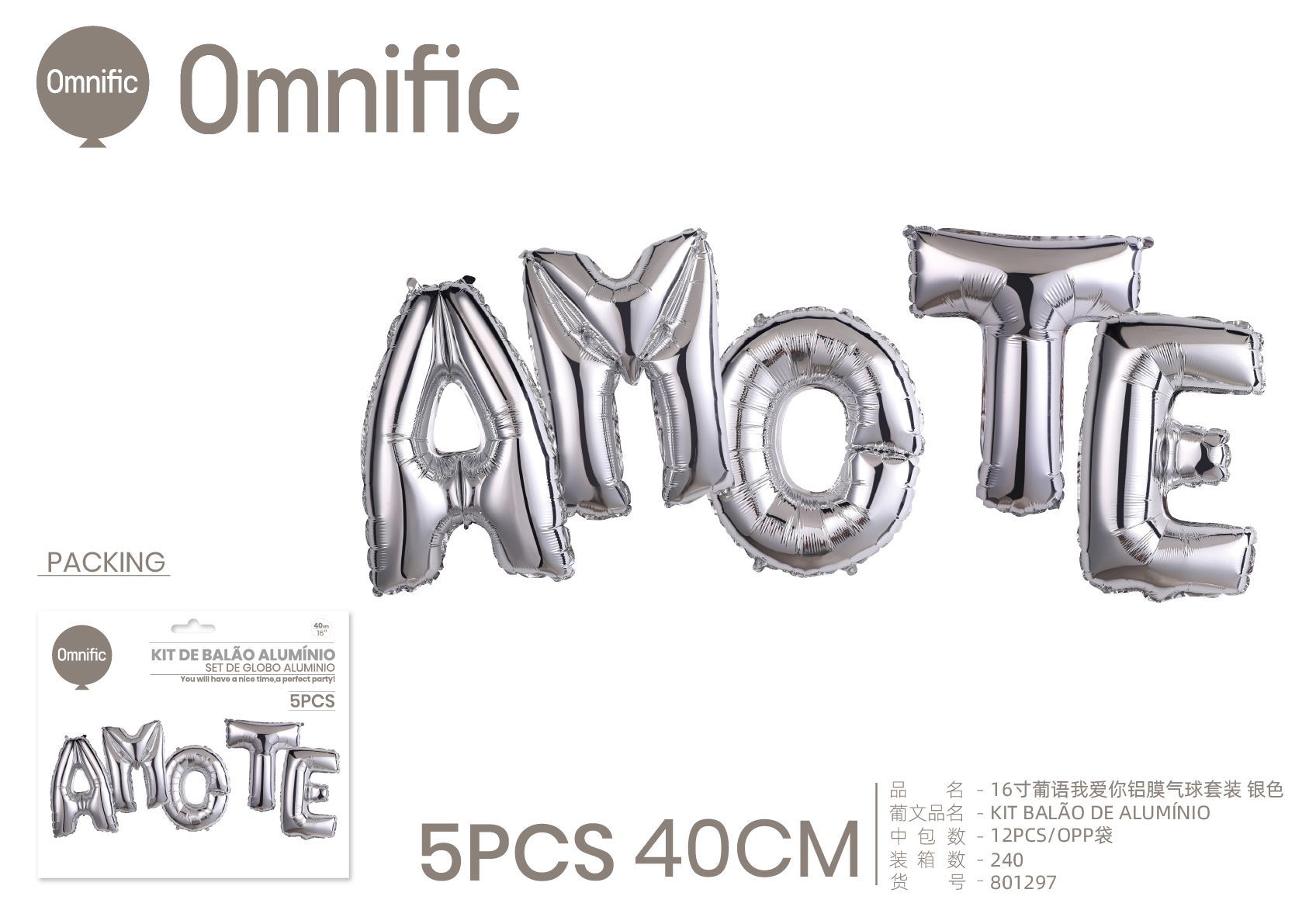 C.B. 5600936801297KIT BALAO DE ALUMINIO AMO-TE 16P PRATEADO