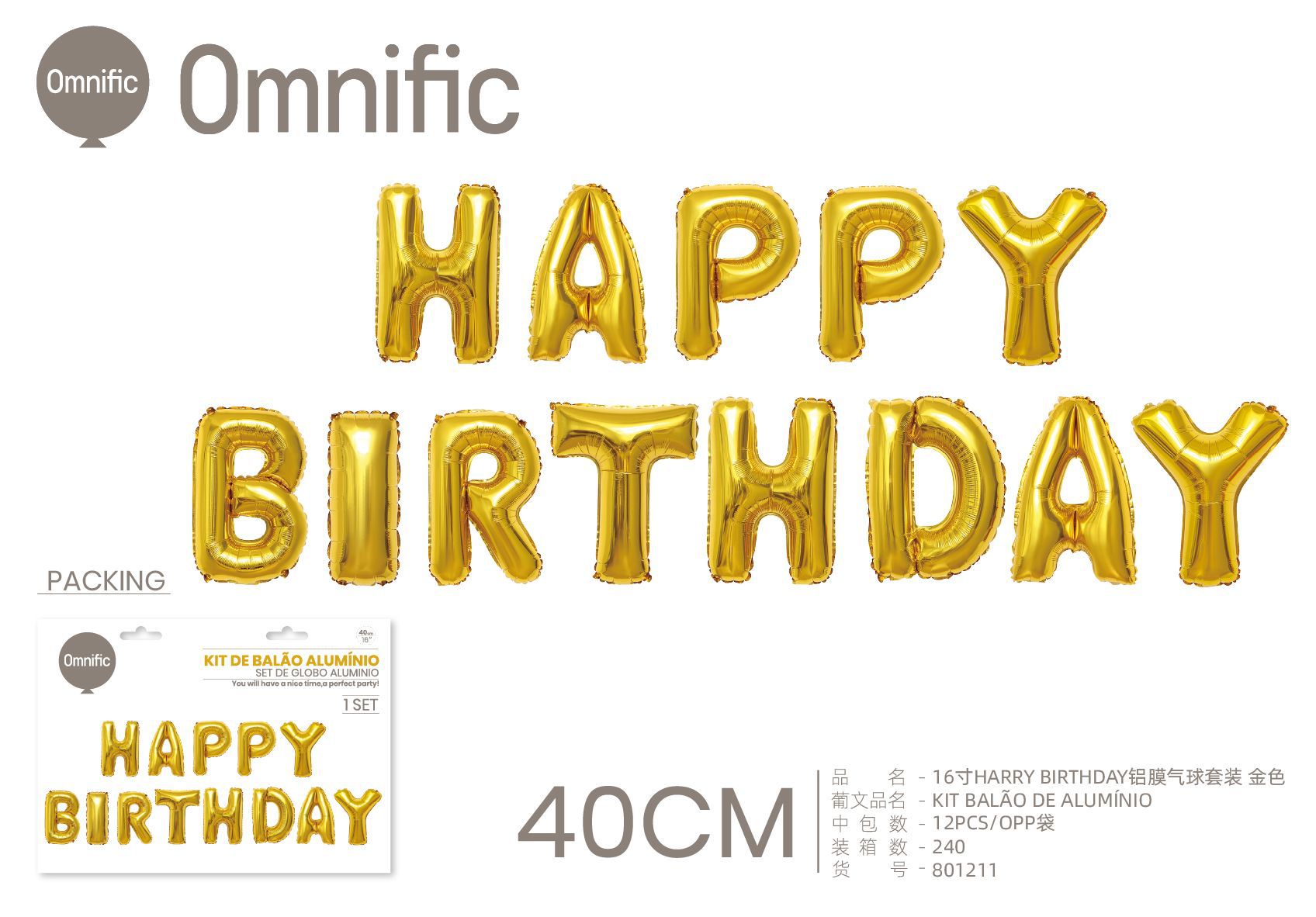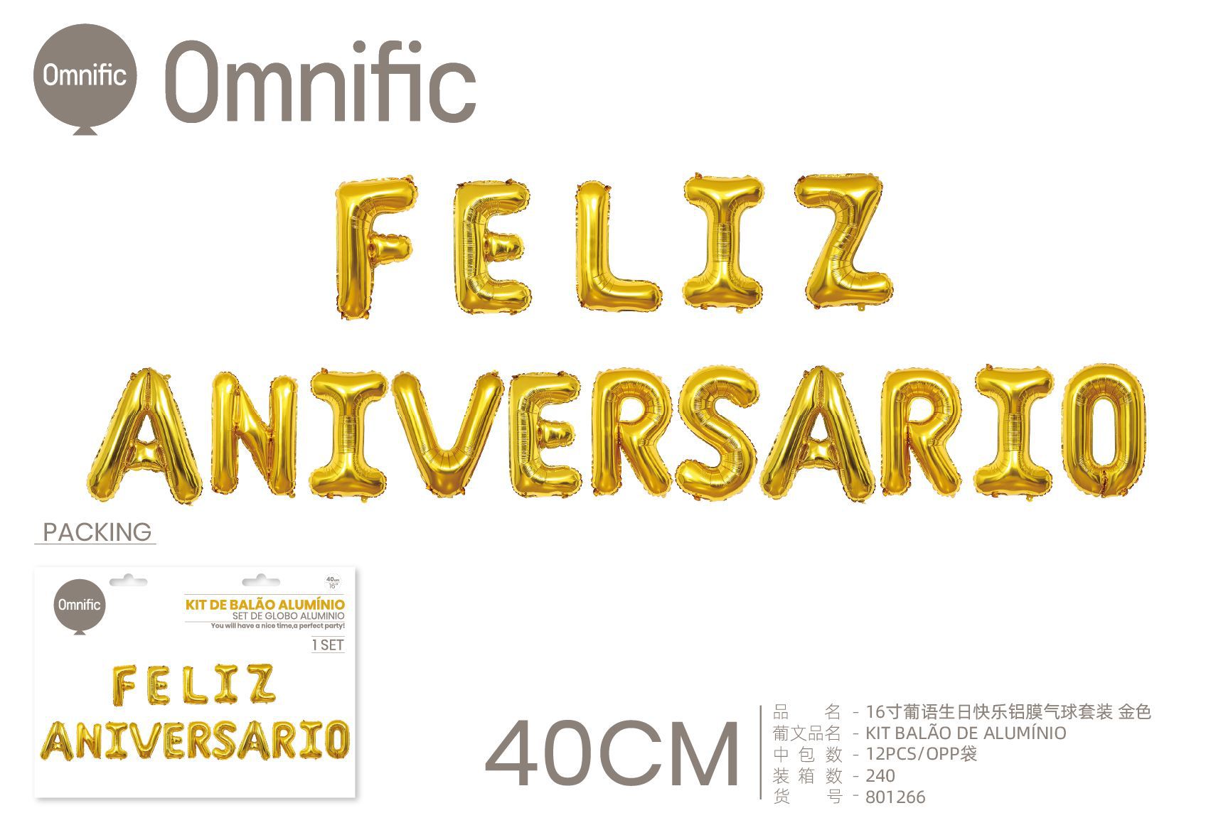 C.B. 5600936801266KIT BALAO DE ALUMINIO 16P F.ANIVERSARIO DOURADO