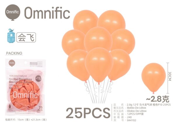 C.B. 5600936844102BALAO DE LATEX 12″ 30CM 2.8GR 25PCS LARANJA PASTEL