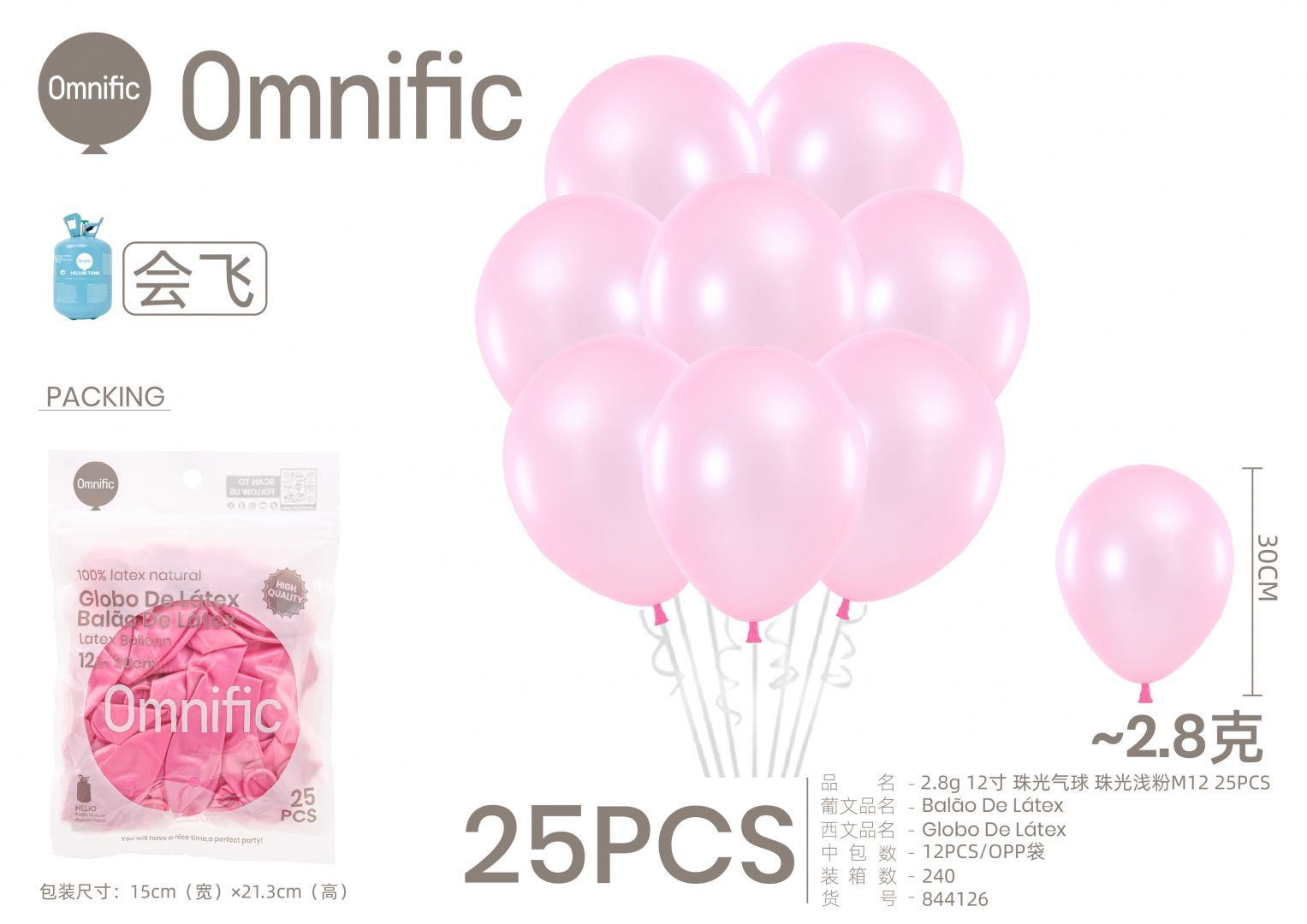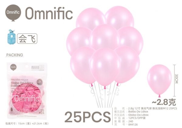 C.B. 5600936844126BALAO DE LATEX 12″ 30CM 2.8GR 25PCS ROSA CLARO PEROLADO