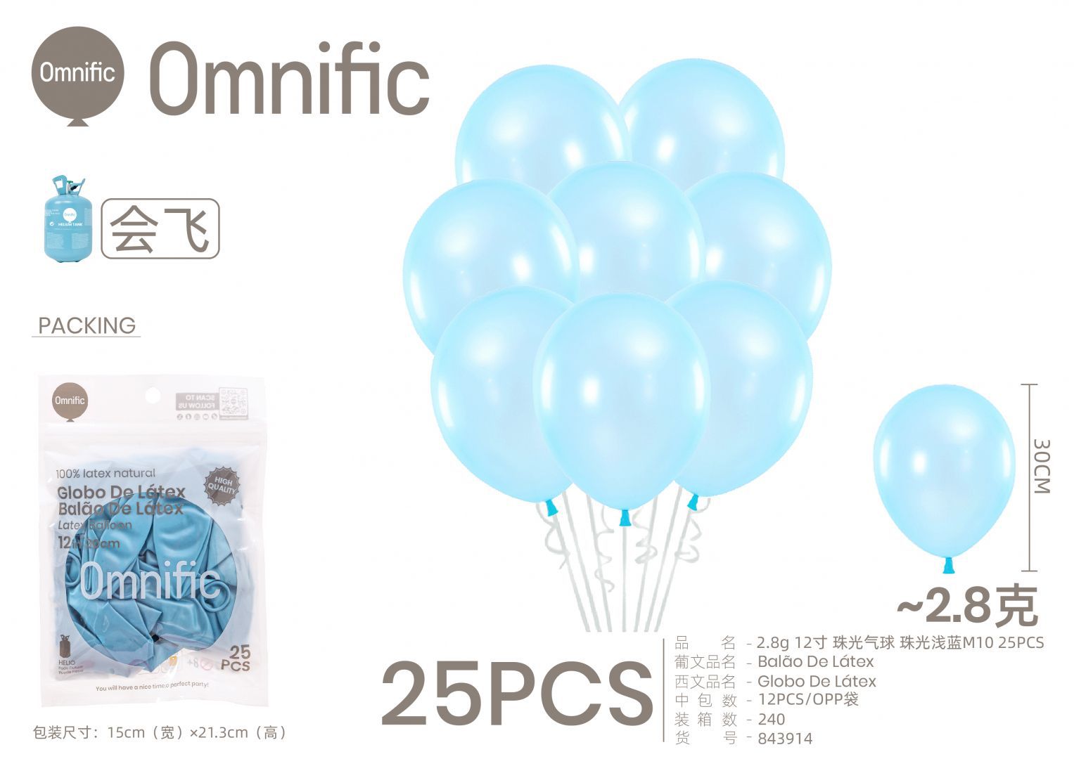 C.B. 5600936843914BALAO DE LATEX 12″ 30CM 2.8GR 25PCS AZUL CLARO PEROLADO