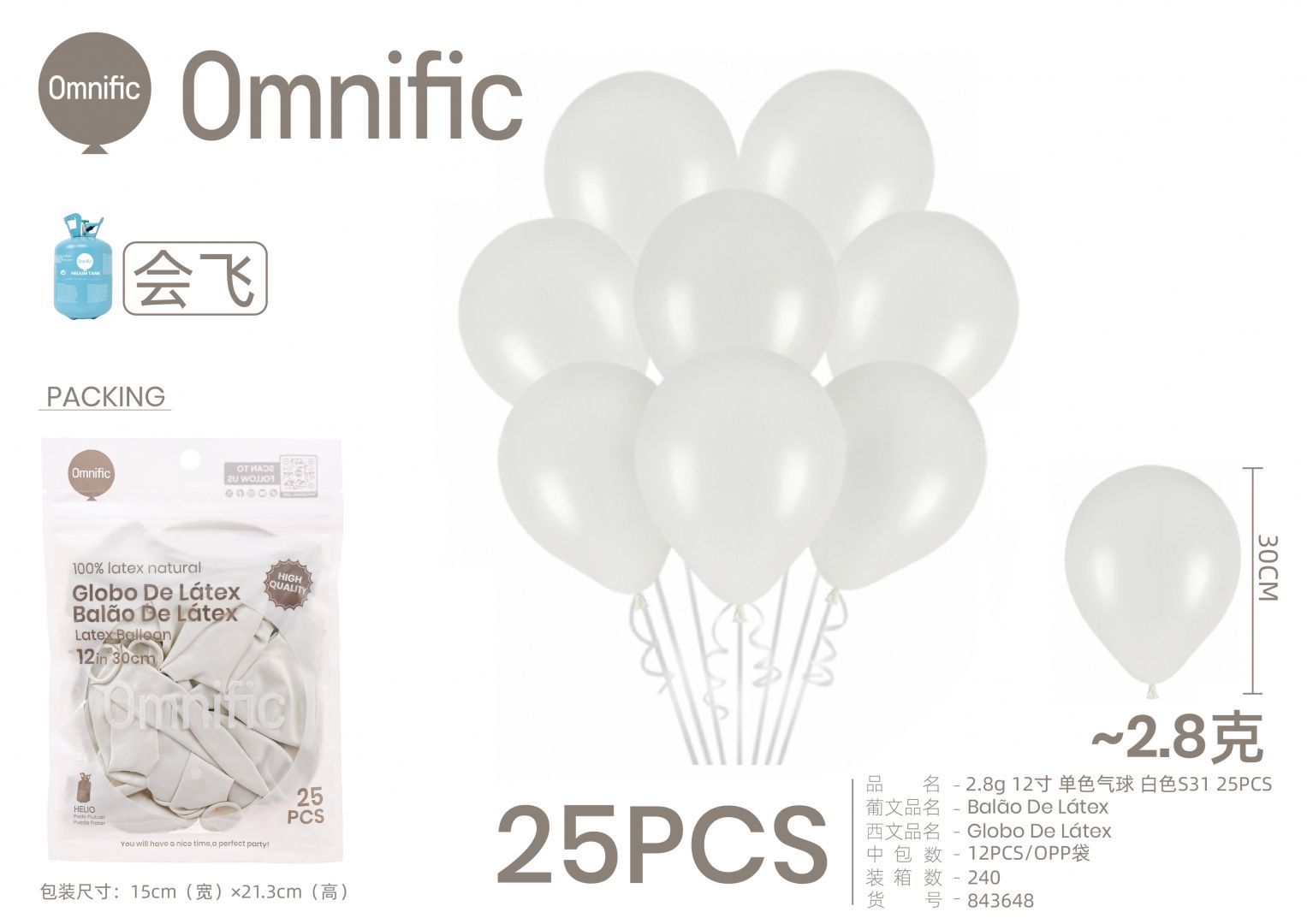 C.B. 5600936843648BALAO DE LATEX 12″ 30CM 2.8GR 25PCS BRANCO