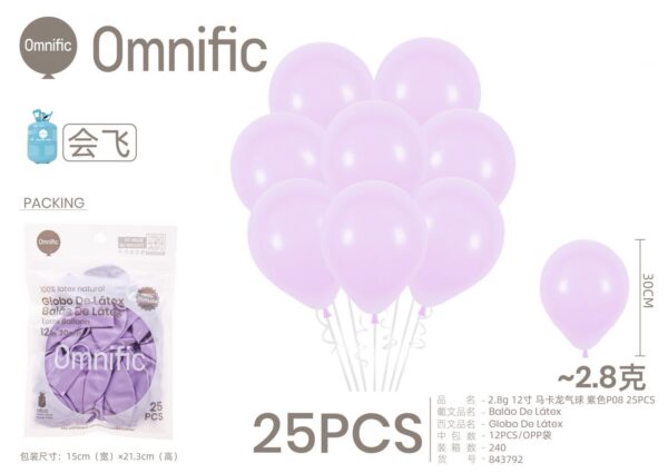 C.B. 5600936843792BALAO DE LATEX 12″ 30CM 2.8GR 25PCS ROXO PASTEL