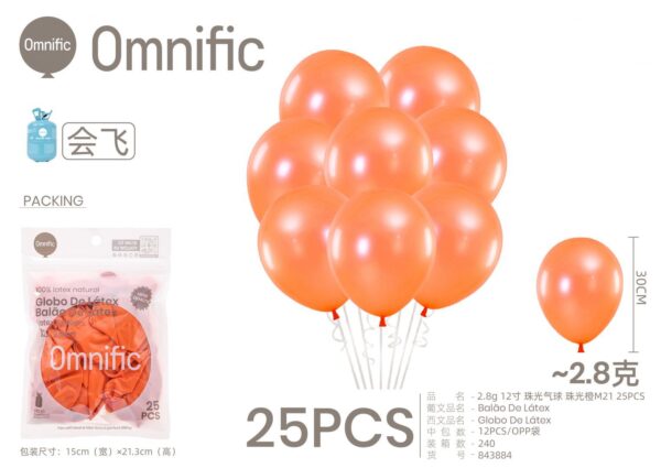 C.B. 5600936843884BALAO DE LATEX 12″ 30CM 2.8GR 25PCS LARANJA PEROLADO