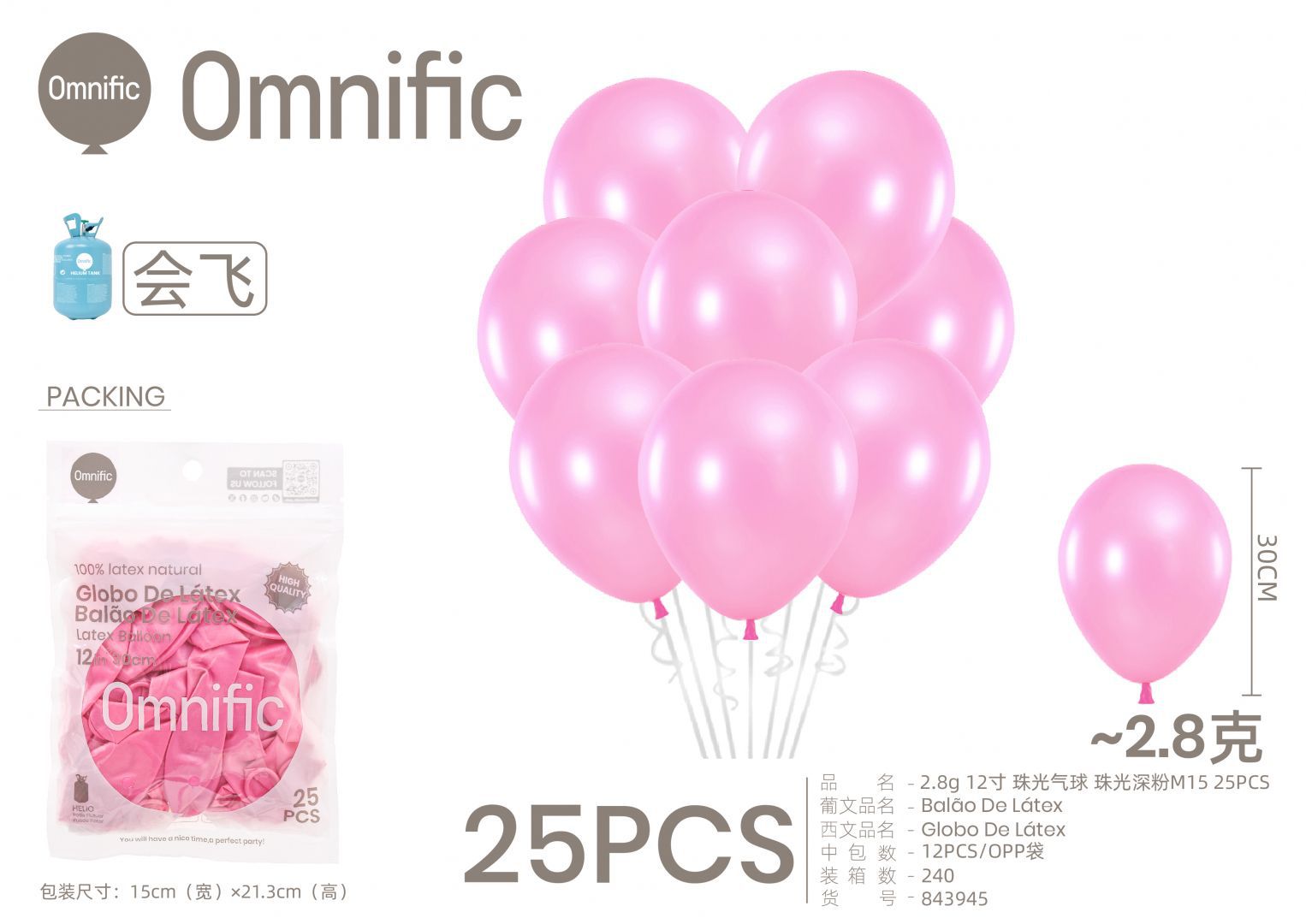 C.B. 5600936843952BALAO DE LATEX 12″ 30CM 2.8GR 25PCS ROSA ROSADO PEROLADO