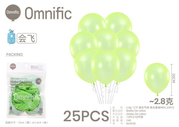 C.B. 5600936843938BALAO DE LATEX 12″ 30CM 2.8GR 25PCS VERDE LIMA PEROLADO