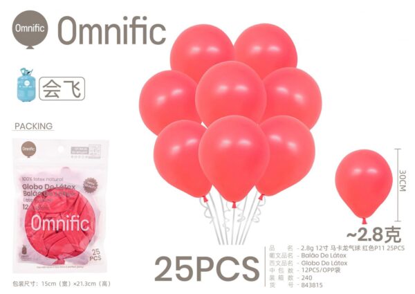 C.B. 5600936843815BALAO DE LATEX 12″ 30CM 2.8GR 25PCS VERMELHO PASTE