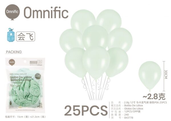 C.B. 5600936843778BALAO DE LATEX 12″ 30CM 2.8GR 25PCS VERDE PASTEL