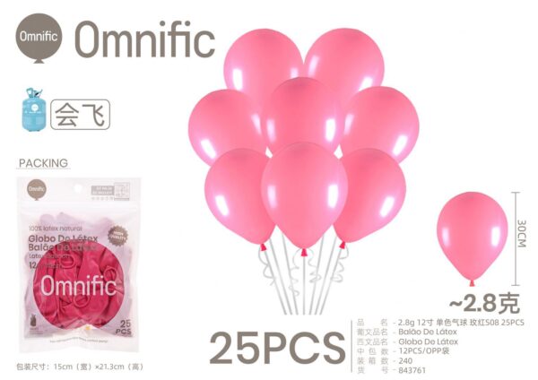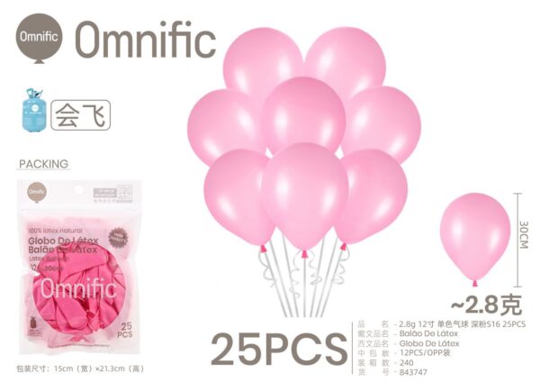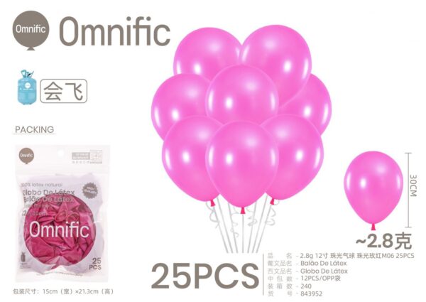 C.B. 5600936843945BALAO DE LATEX 12″ 30CM 2.8GR 25PCS ROSA ESCURO PEROLADO