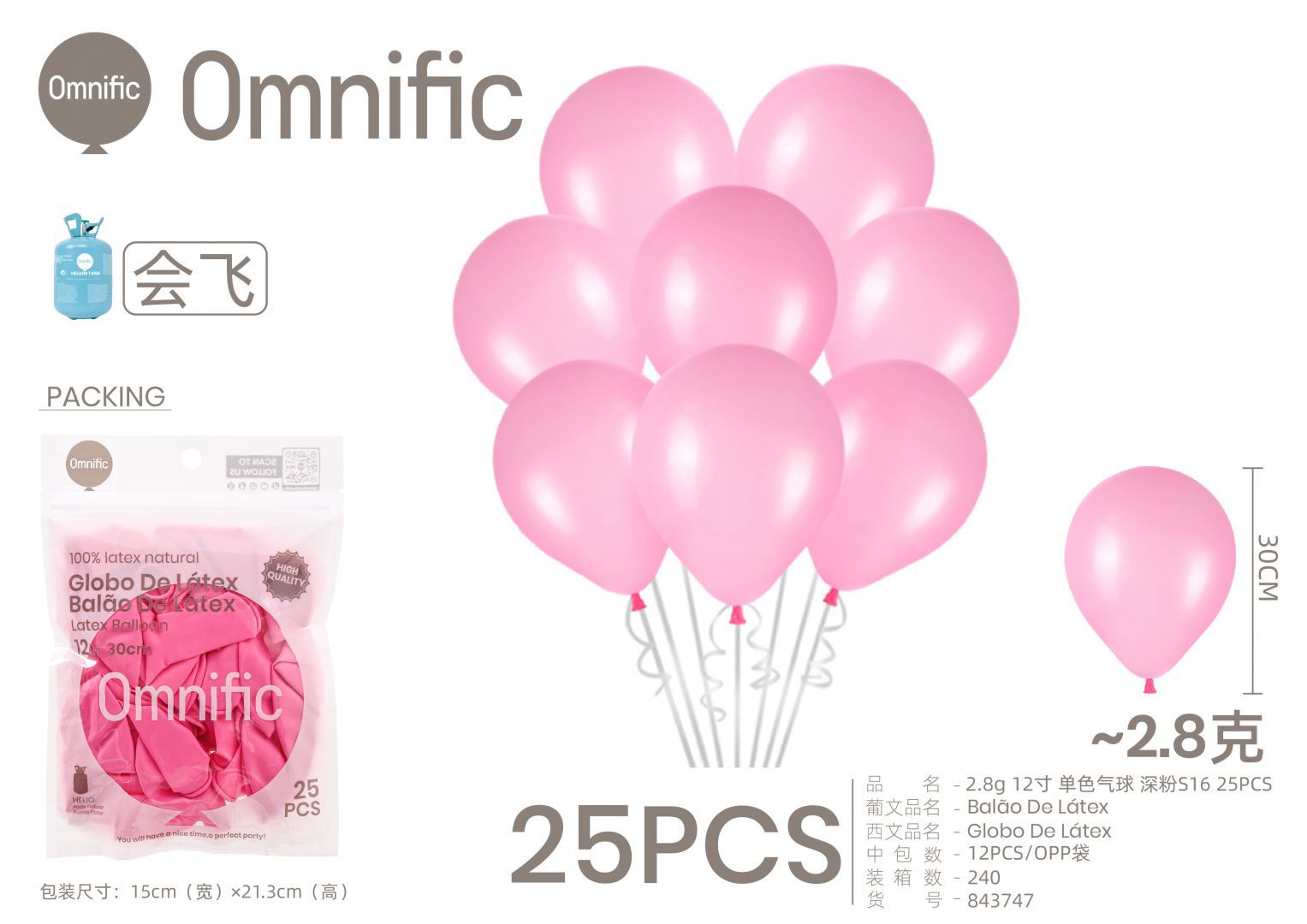 C.B. 5600936844089BALAO DE LATEX 12″ 30CM 2.8GR 25PCS ROSA ROSADO