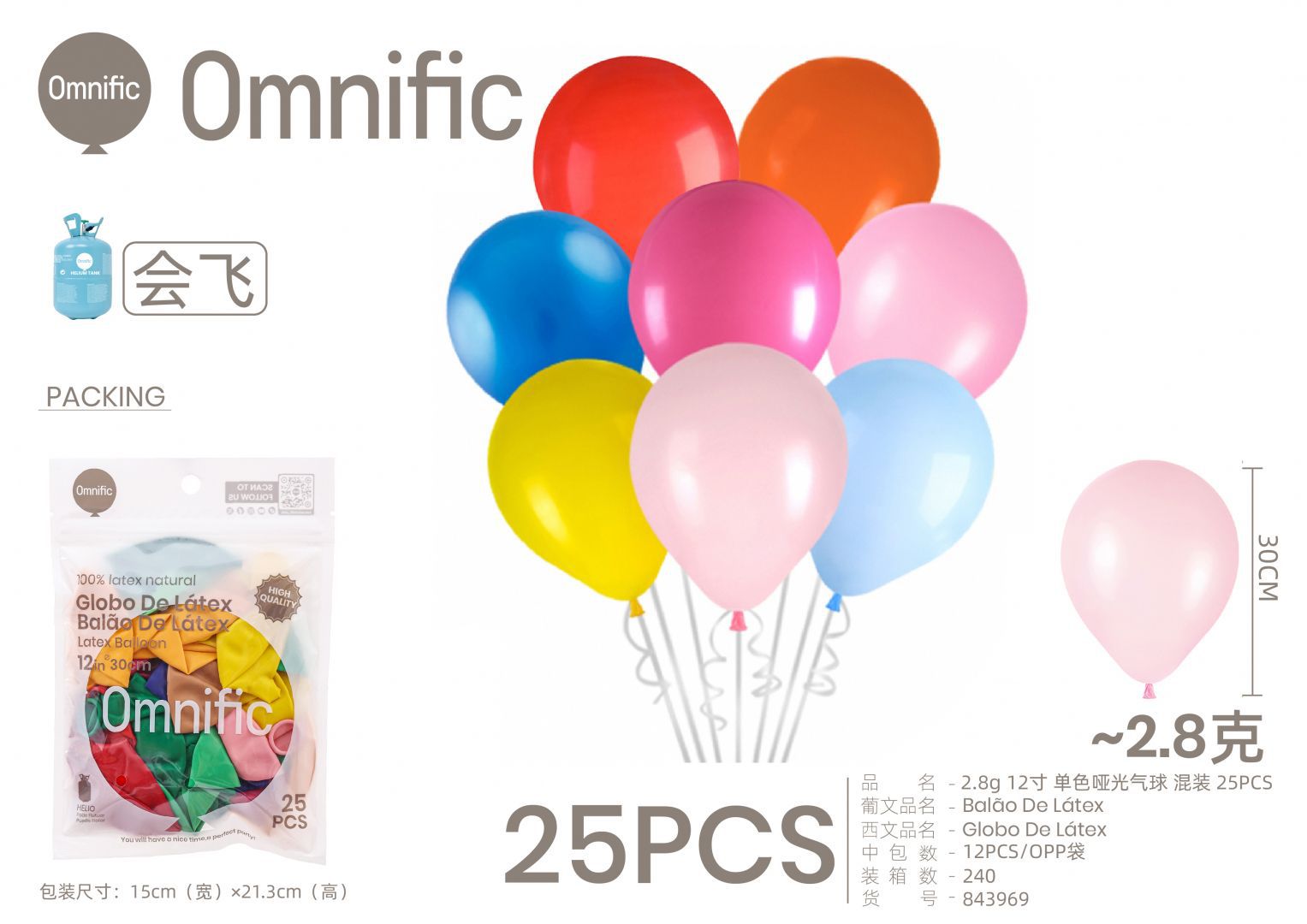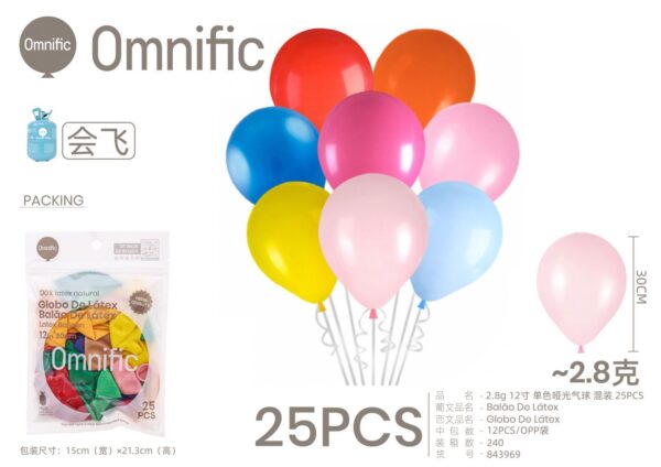 C.B. 5600936843976BALAO DE LATEX 12″ 30CM 2.8GR 25PCS SORTIDO
