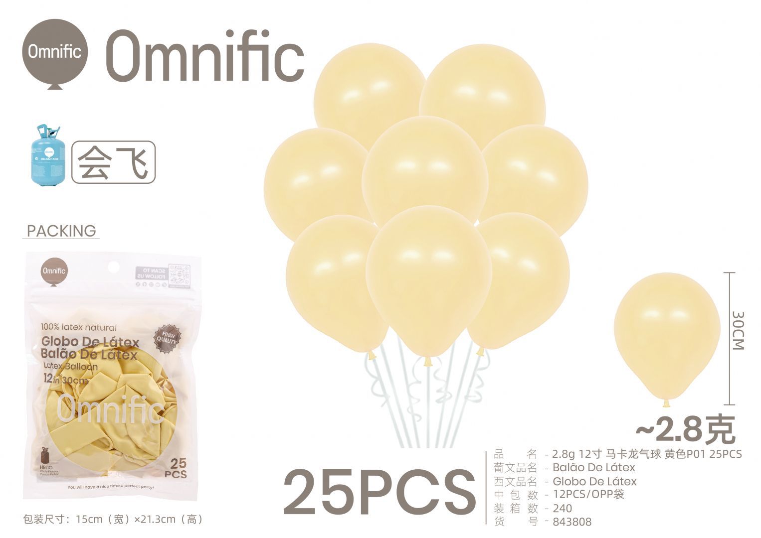 C.B. 5600936843808BALAO DE LATEX 12″ 30CM 2.8GR 25PCS AMARELO PASTEL