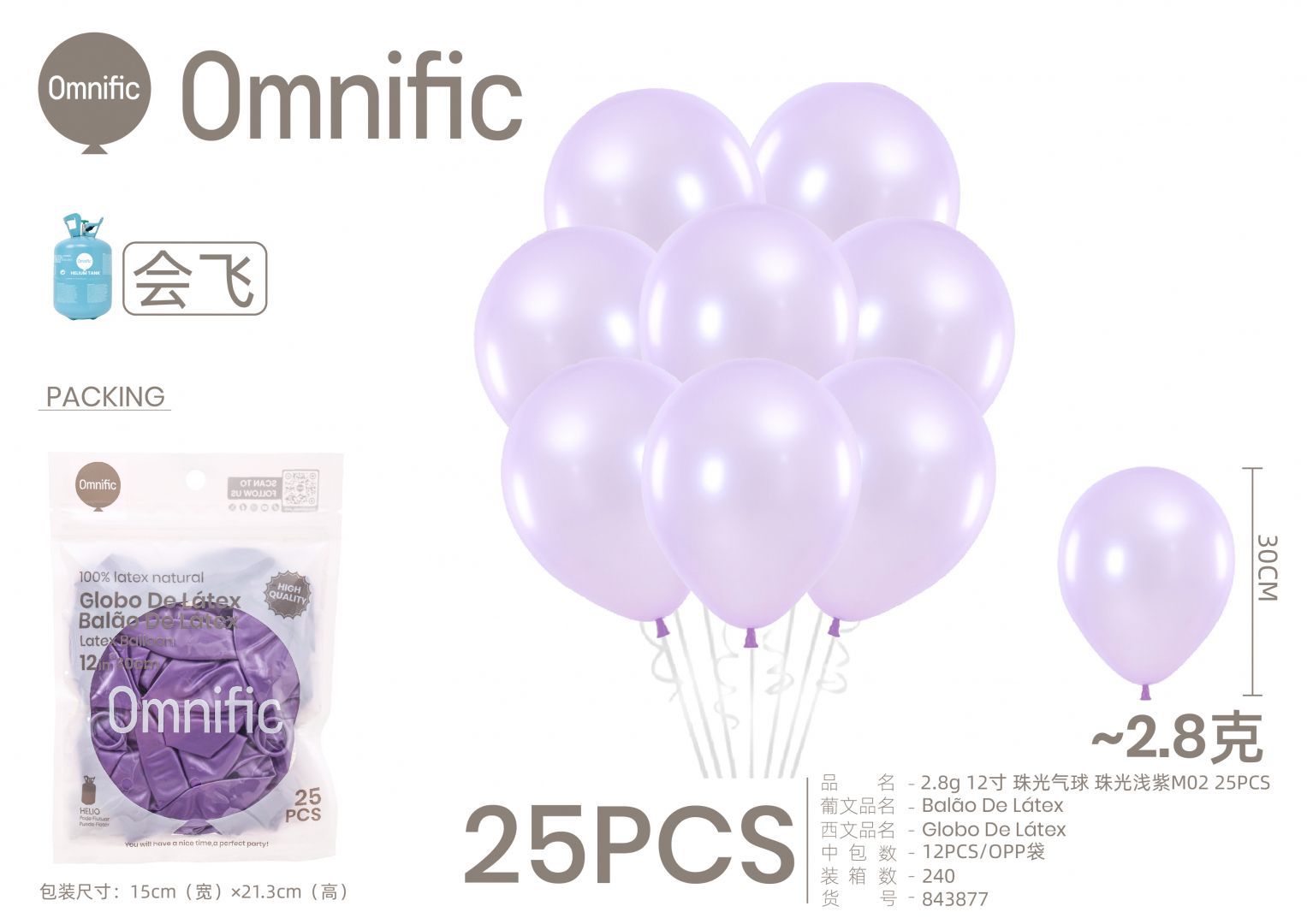 C.B. 5600936843877BALAO DE LATEX 12″ 30CM 2.8GR 25PCS ROXO CLARO PEROLADO