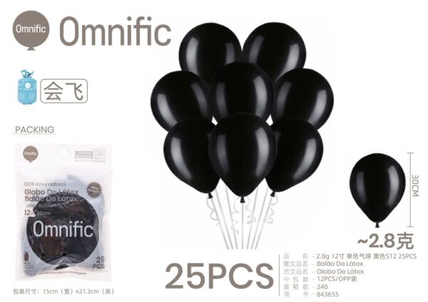 C.B. 5600936843655BALAO DE LATEX 12″ 30CM 2.8GR 25PCS PRETO