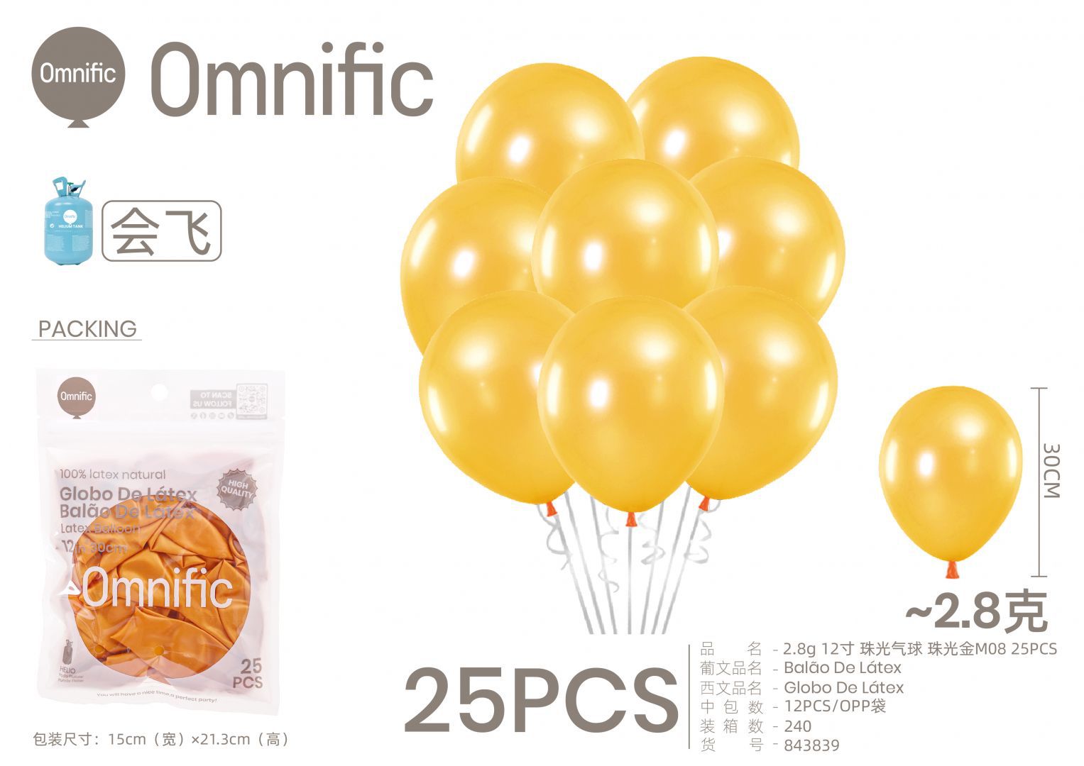 C.B. 5600936843839BALAO DE LATEX 12″ 30CM 2.8GR 25PCS DOURADO PEROLADO