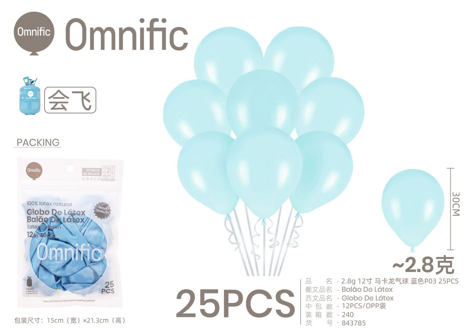 C.B. 5600936843785BALAO DE LATEX 12″ 30CM 2.8GR 25PCS AZUL PASTEL