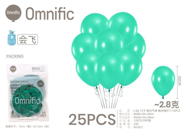 C.B. 5600936843921BALAO DE LATEX 12″ 30CM 2.8GR 25PCS VERDE PEROLADO