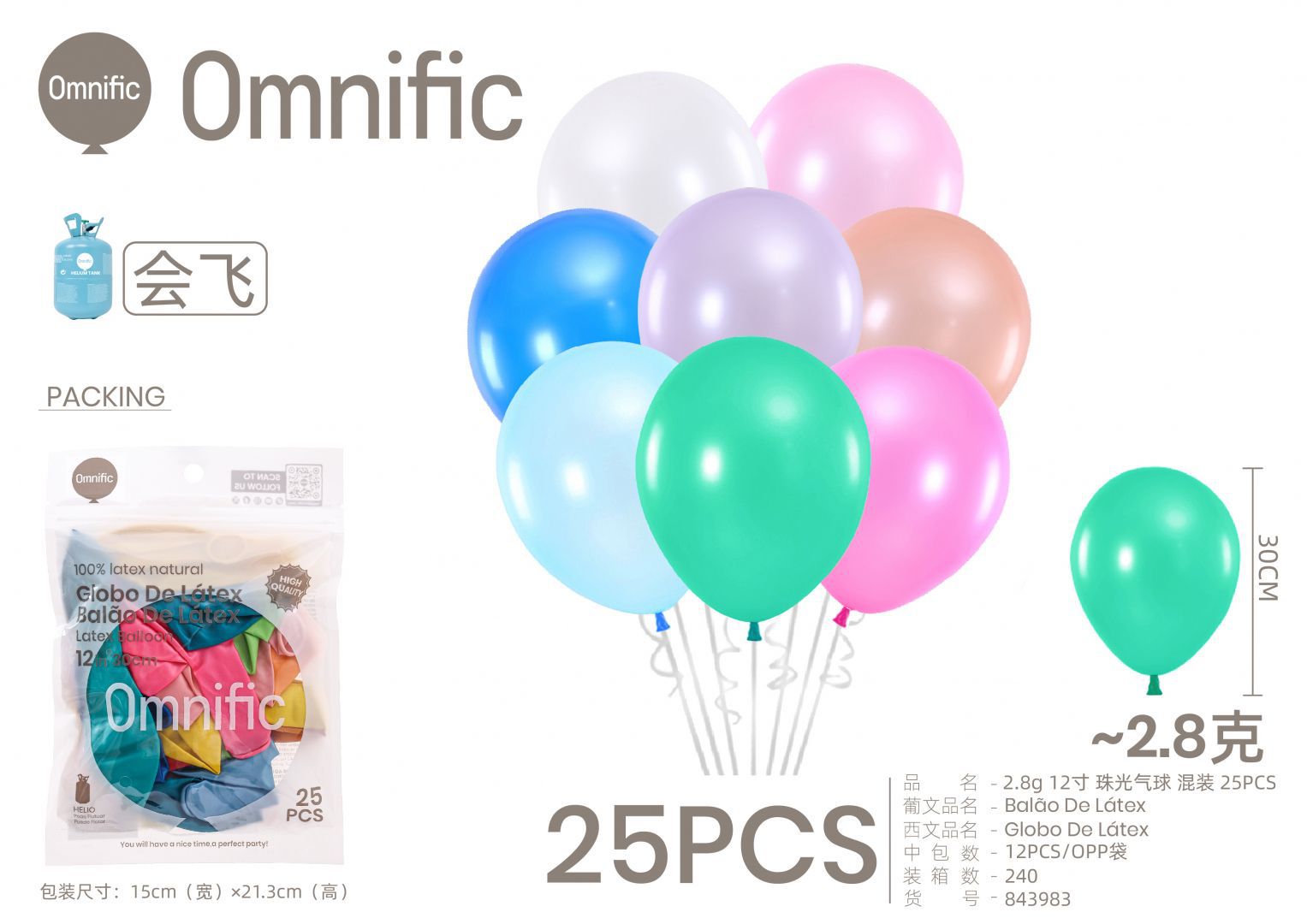 C.B. 5600936843983BALAO DE LATEX 12″ 30CM 2.8GR 25PCS SORTIDO PEROLADO