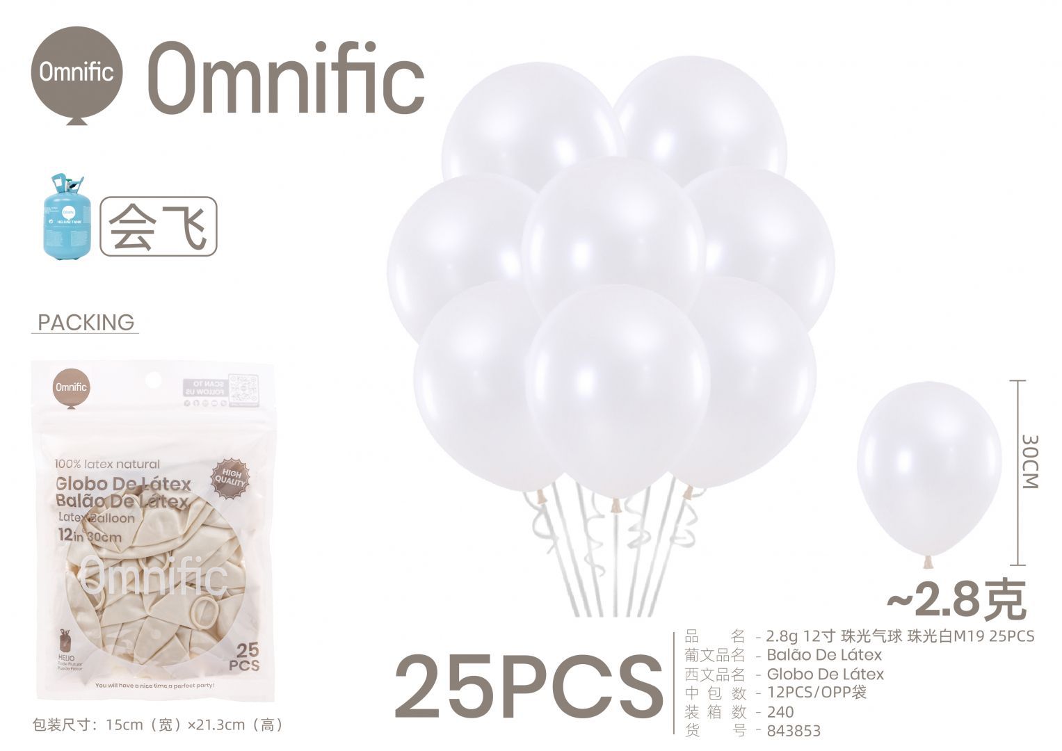C.B. 5600936843853BALAO DE LATEX 12″ 30CM 2.8GR 25PCS BRANCO PEROLADO