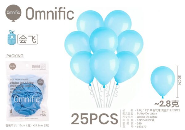 C.B. 5600936843679BALAO DE LATEX 12″ 30CM 2.8GR 25PCS AZUL CLARO