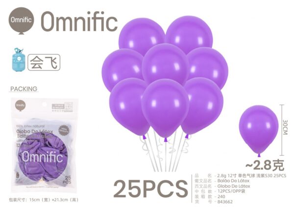 C.B. 5600936843662BALAO DE LATEX 12″ 30CM 2.8GR 25PCS ROXO CLARO