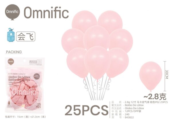 C.B. 5600936843822BALAO DE LATEX 12″ 30CM 2.8GR 25PCS ROSA PASTEL