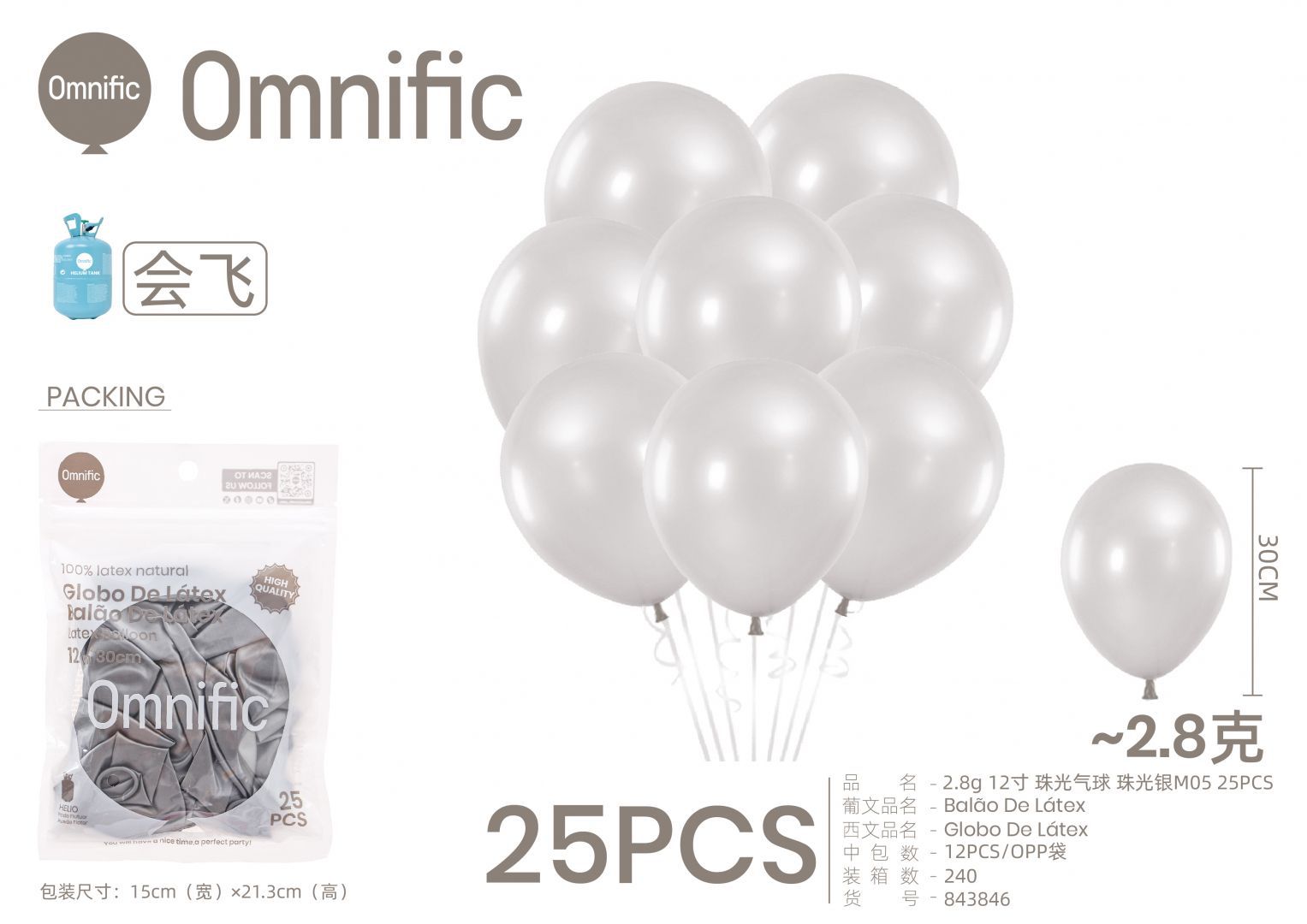 C.B. 5600936843846BALAO DE LATEX 12″ 30CM 2.8GR 25PCS PRATEADO PEROLADO