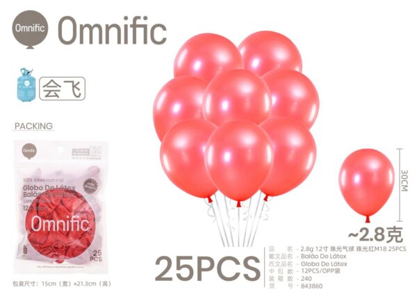 C.B. 5600936843860BALAO DE LATEX 12″ 30CM 2.8GR 25PCS VERMELHO PEROLADO