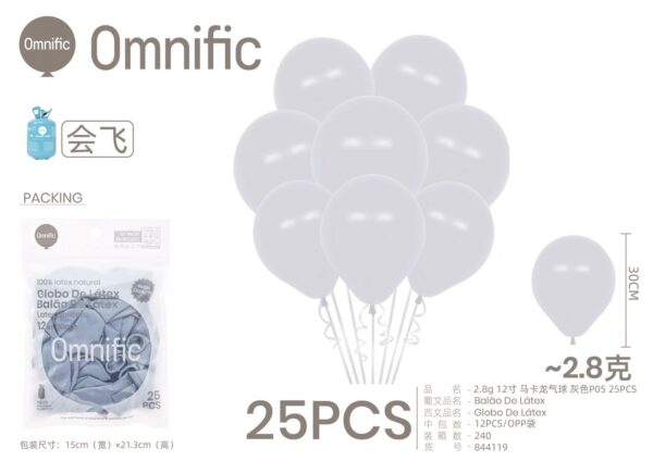 C.B. 5600936844119BALAO DE LATEX 12″ 30CM 2.8GR 25PCS CINZENTO PASTEL