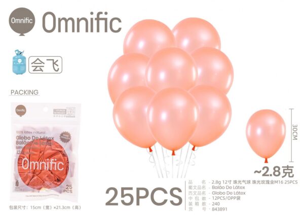 C.B. 5600936843891BALAO DE LATEX 12″ 30CM 2.8GR 25PCS ROSA DOURADO PEROLADO