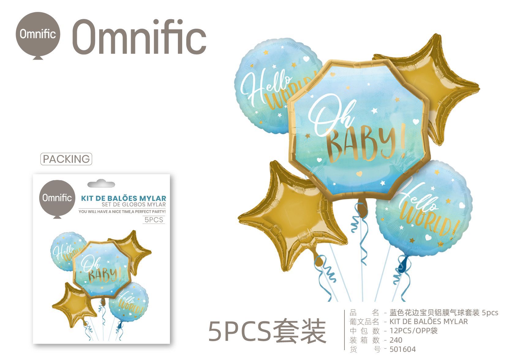 C.B. 5606858501673KIT DE BALOES MYLAR 5PCS