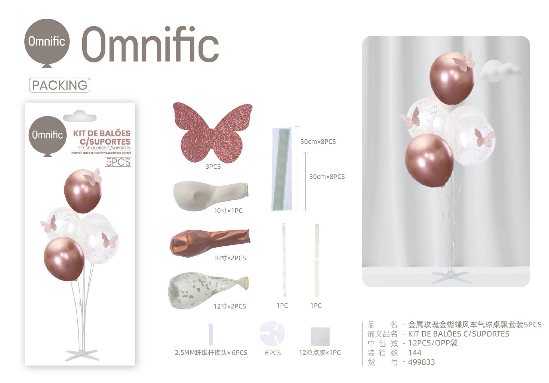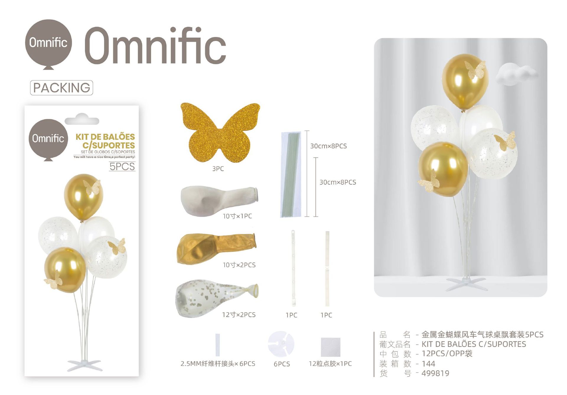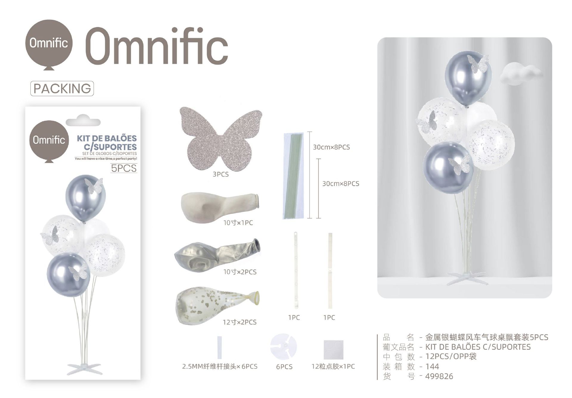 C.B. 5606858499819KIT DE BALOES METALIZADOS C/SUPORTES 5PCS