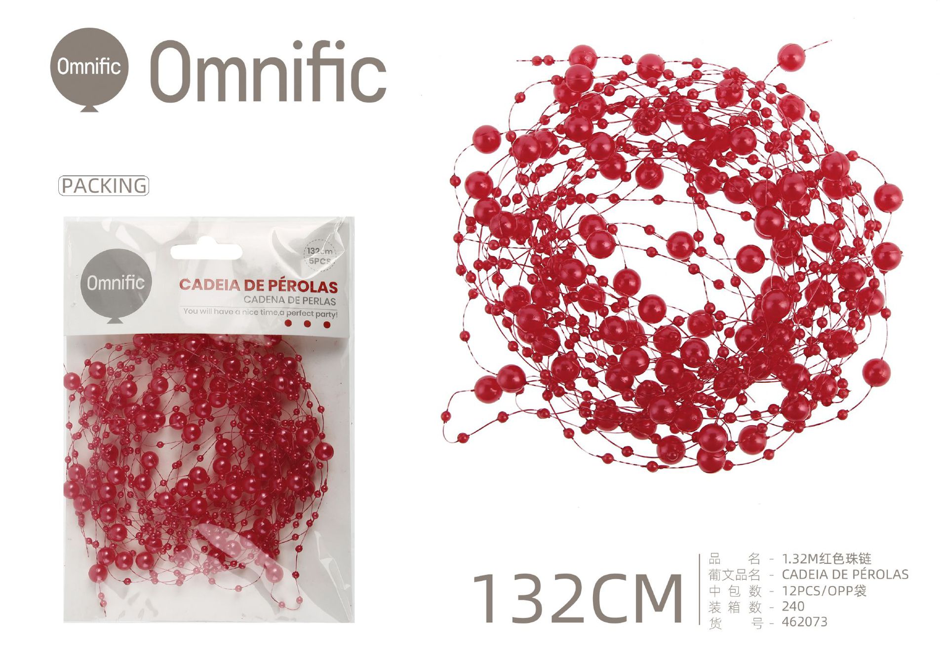 C.B. 5606858462073PEROLA DECORATIVO P/FESTA 1.32M VERMELHO
