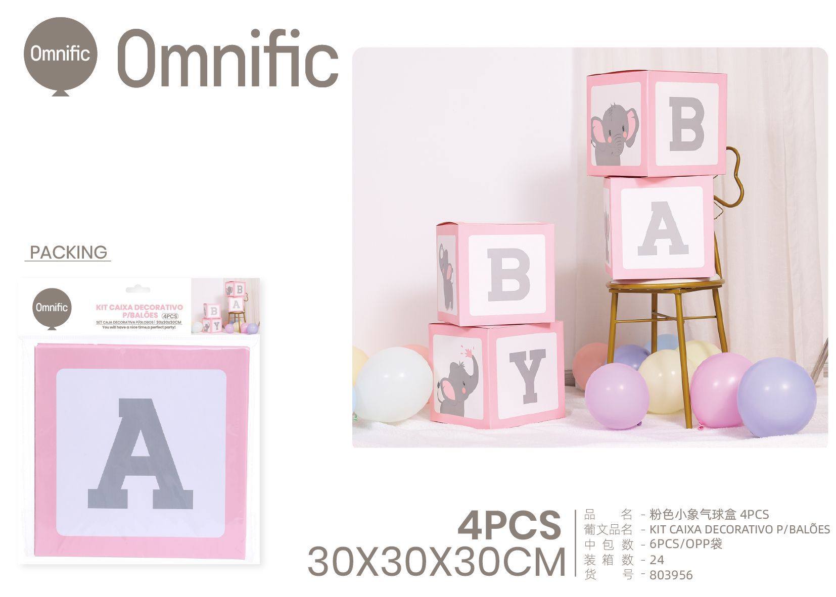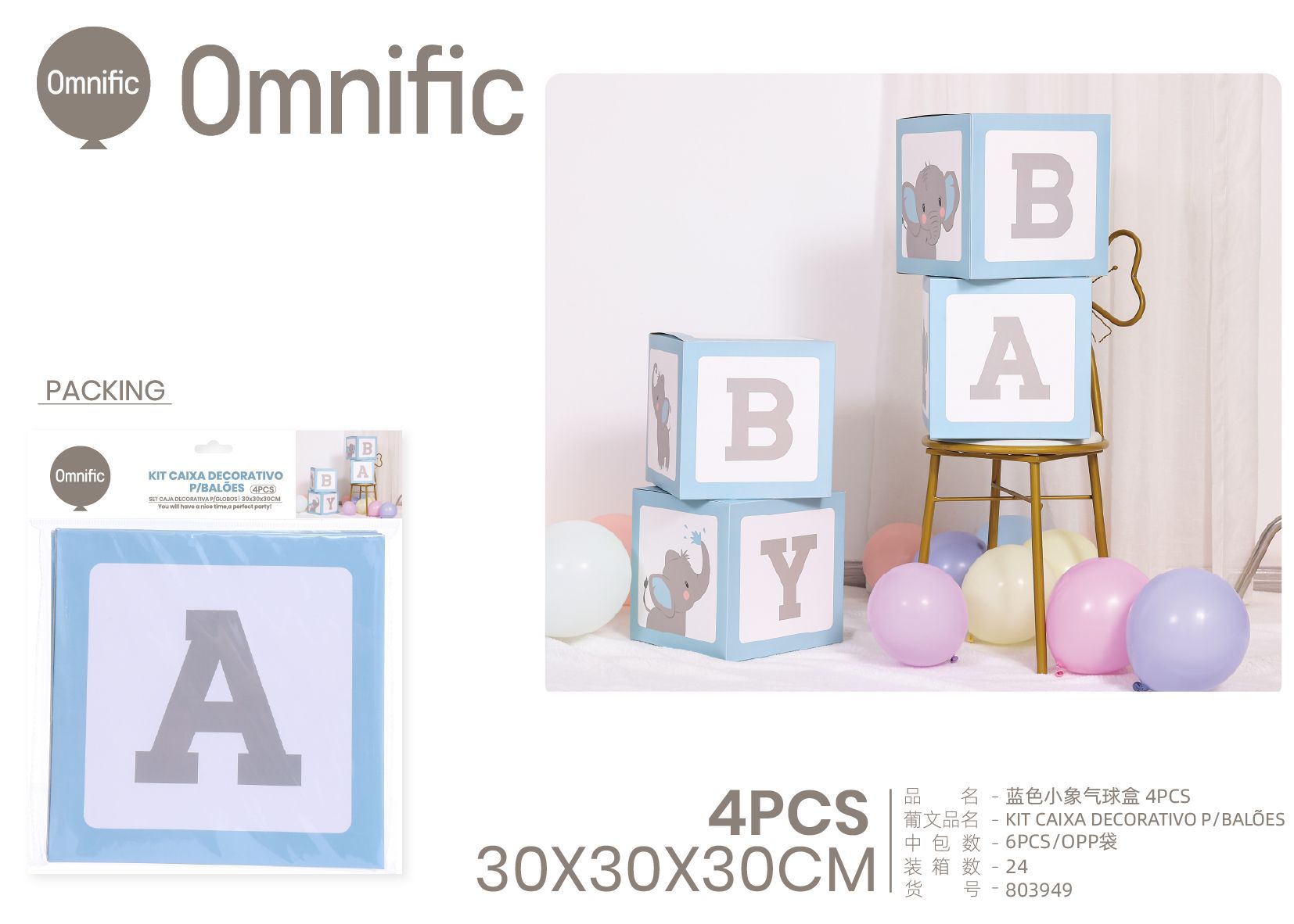 C.B. 5600936803949KIT CAIXA DECORATIVO P/BALOES 30CM 4PCS