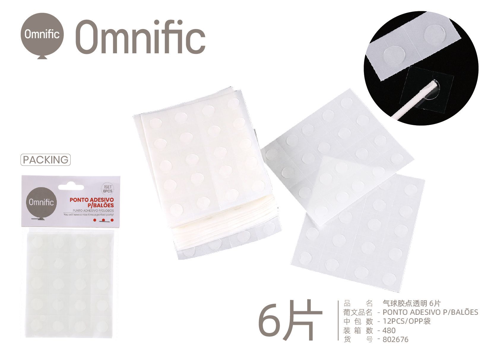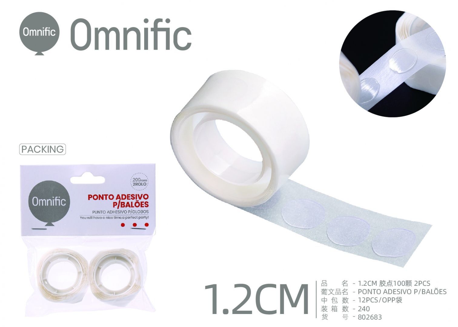 C.B. 5600936802683PONTO ADESIVO P/BALOES 1.2CM 100P 2PCS