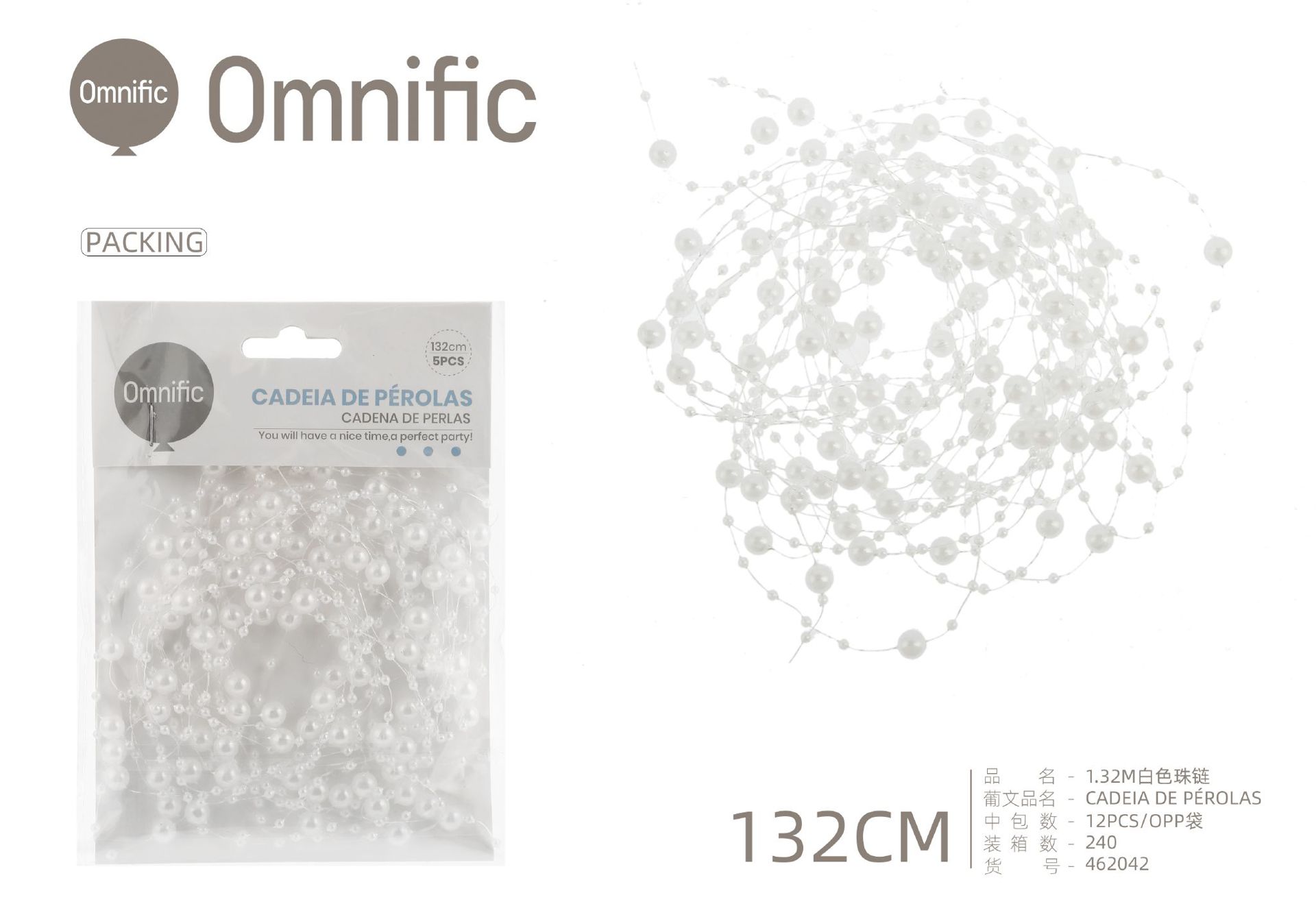 C.B. 5606858462042PEROLA DECORATIVO P/FESTA 1.32M BRANCO