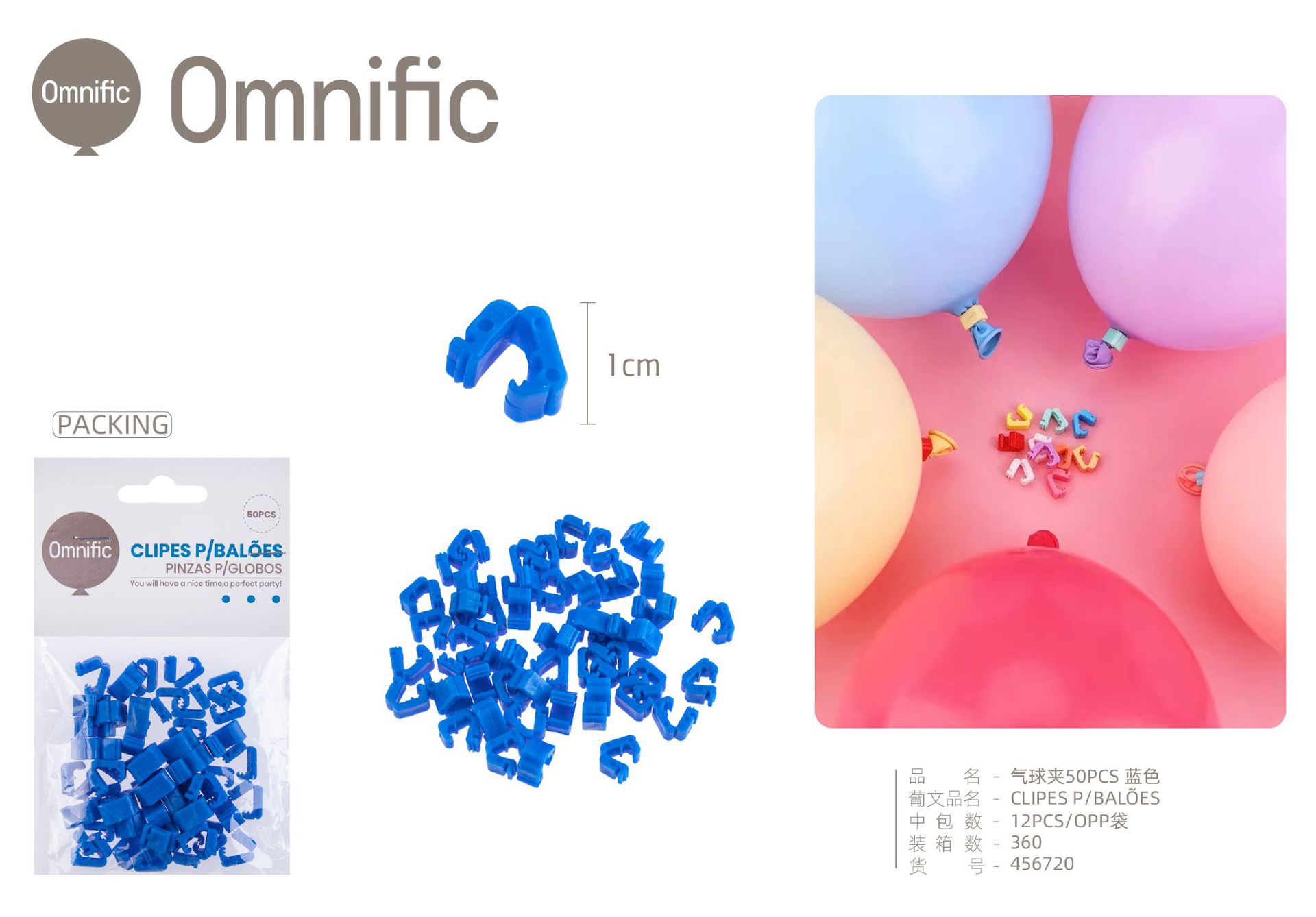 C.B. 5606858456720CLIPE P/BALOES 50PCS AZUL