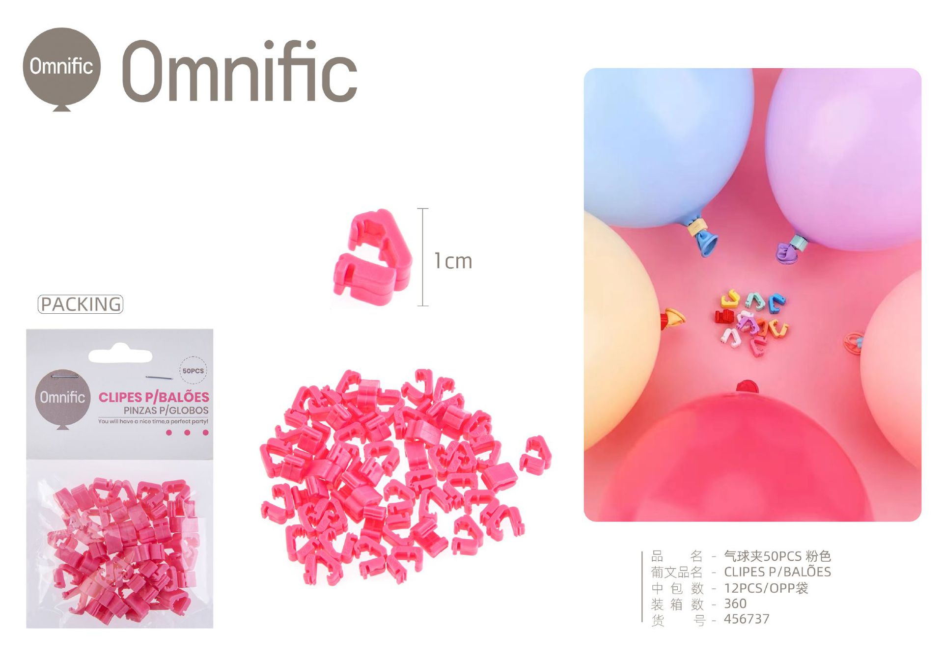 C.B. 5606858456737CLIPE P/BALOES 50PCS ROSA