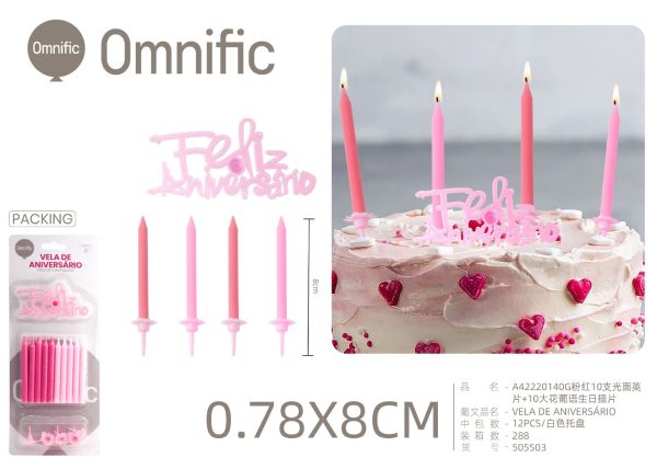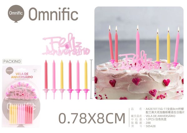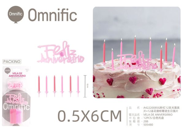 C.B. 5606858433233KIT VELAS ANIVERSARIO ROSA 11.6CM HT-6 12PCS