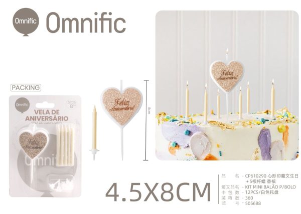 C.B. 5606858439822VELA ANIVERSARIO F.CORACAO HW248 5PCS