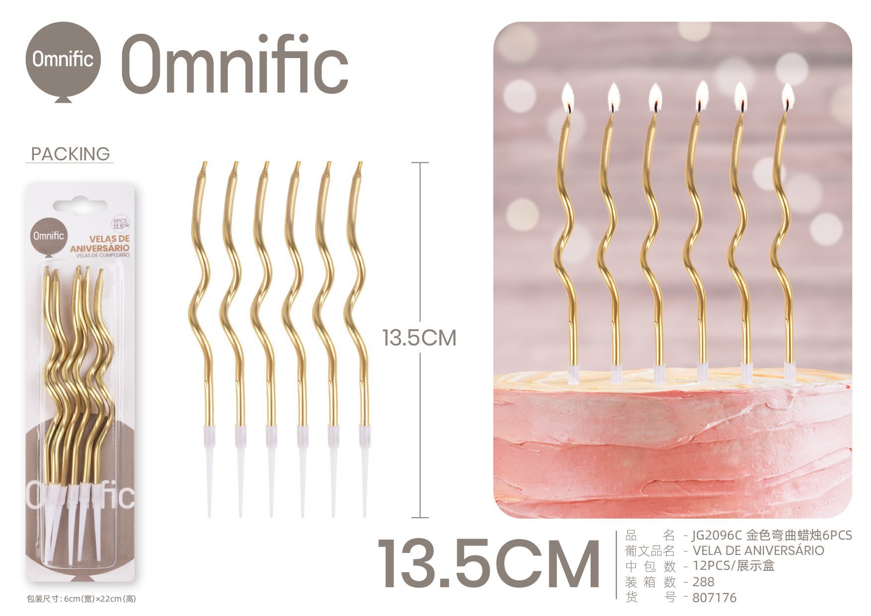 C.B. 5606858433158VELAS ANIVERSARIO DOURADO 7.9CM JQ06-2 6PCS