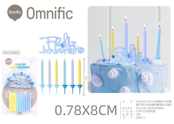 C.B. 5606858433240KIT VELAS ANIVERSARIO AZUL 11.6CM HT-7 12PCS