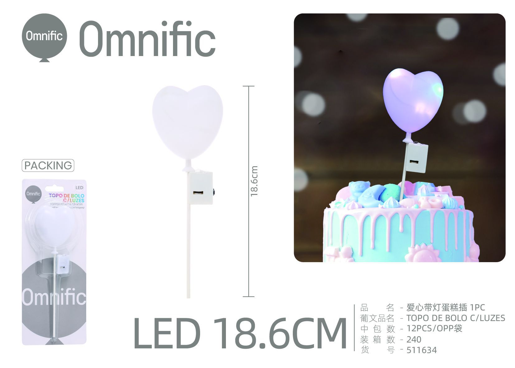C.B. 5606858511634TOPO DE BOLO C/LUZES 1PCS