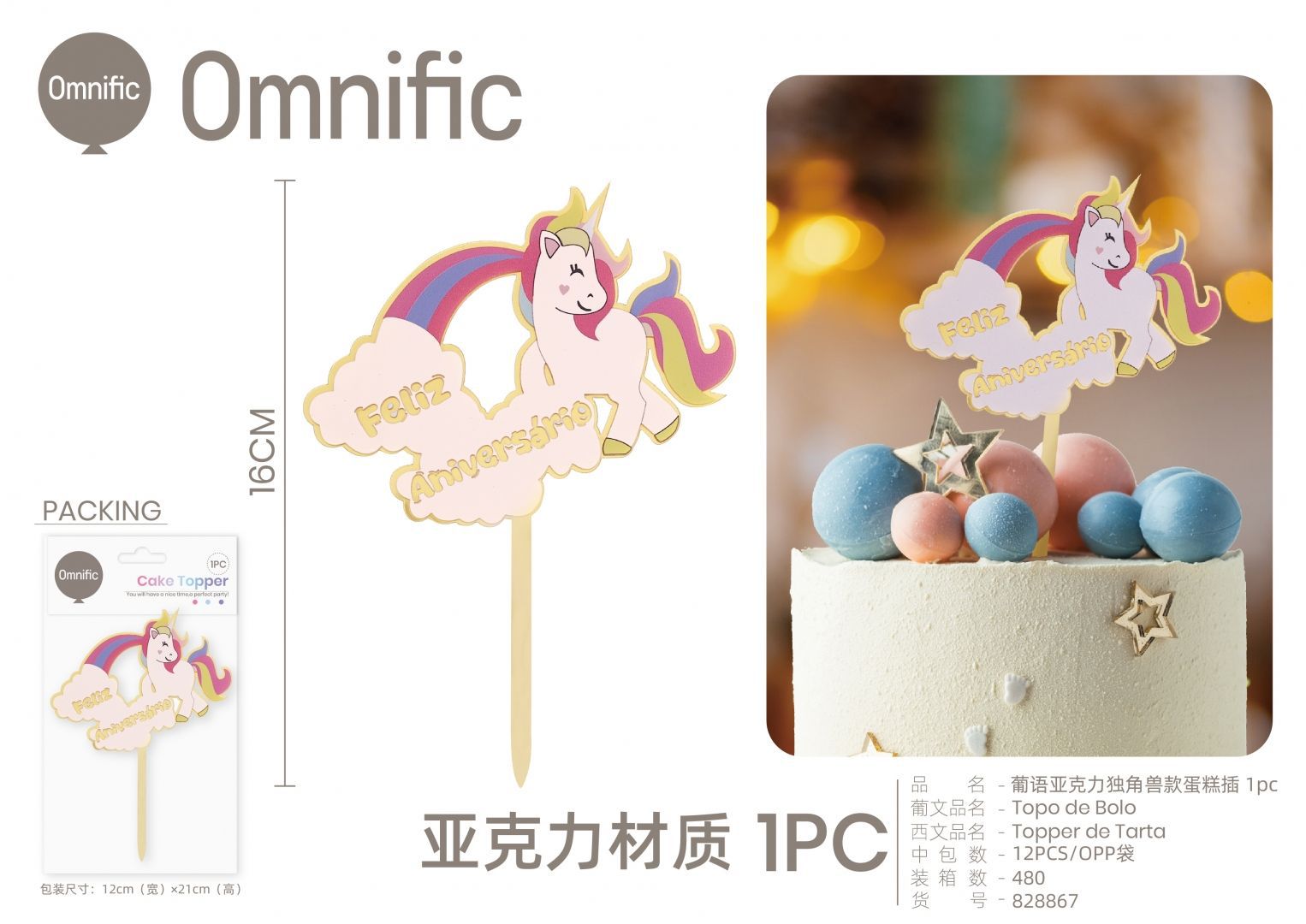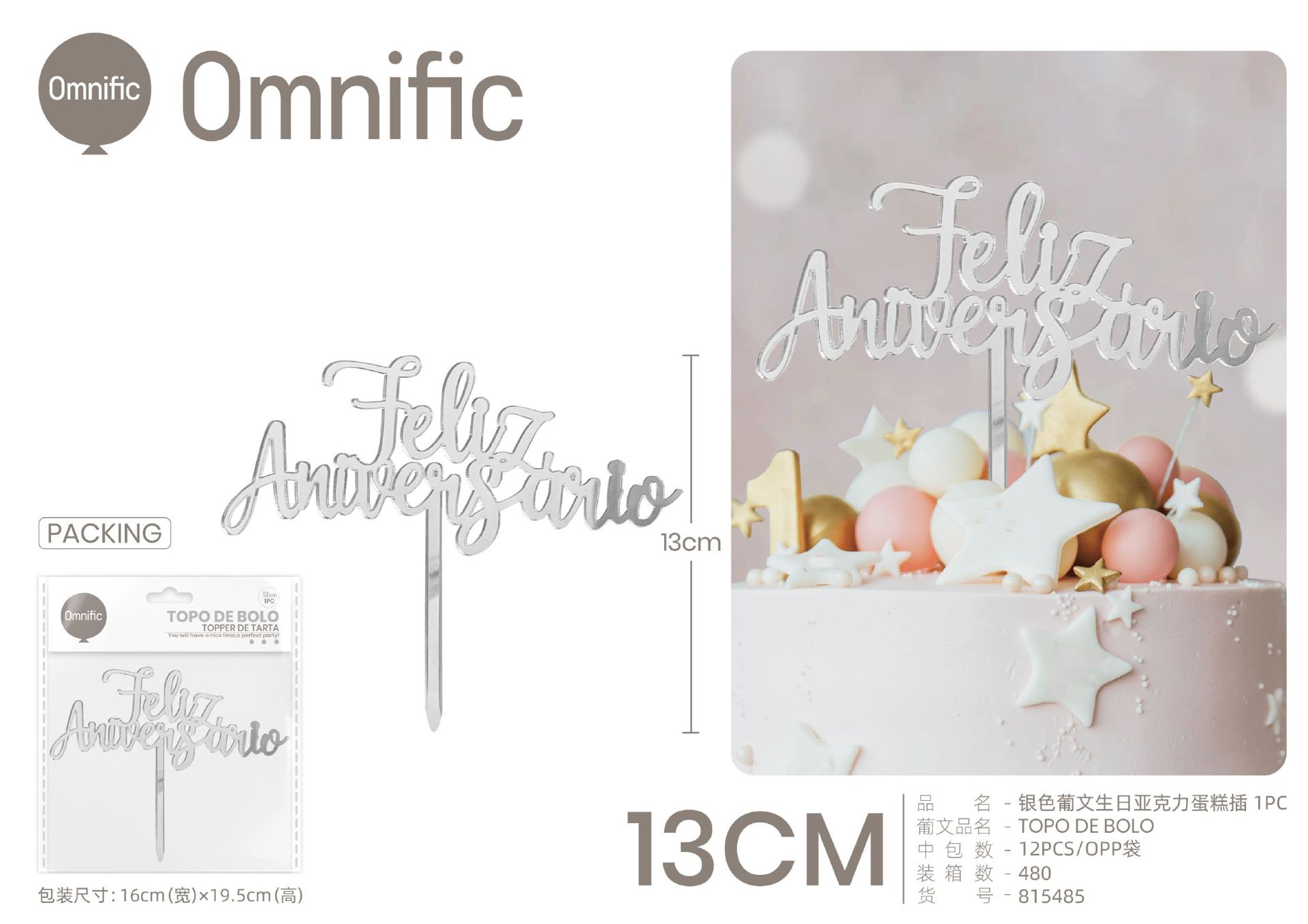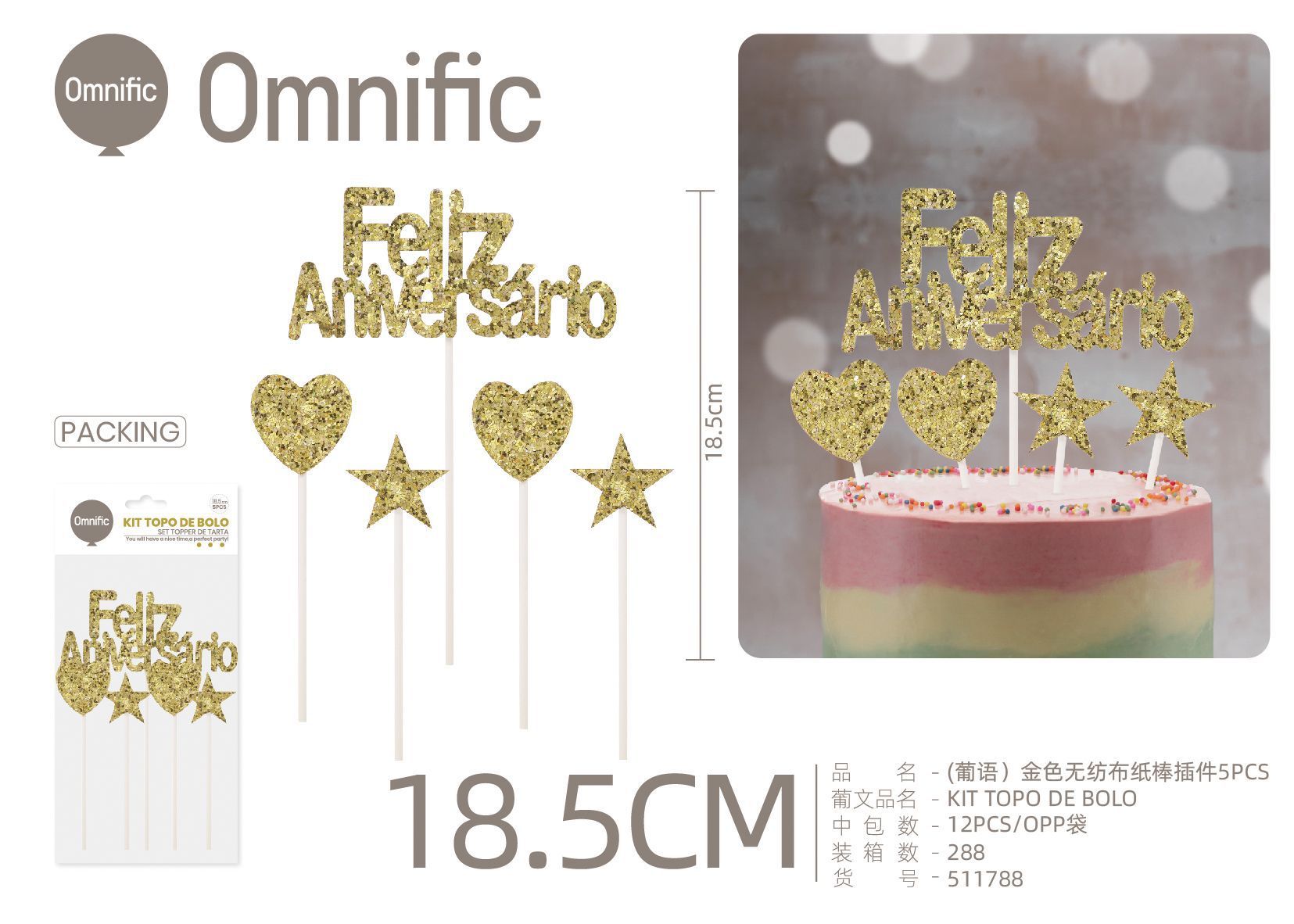 C.B. 5606858511788TOPO DE BOLO F.ANIVERSARIO 5PCS