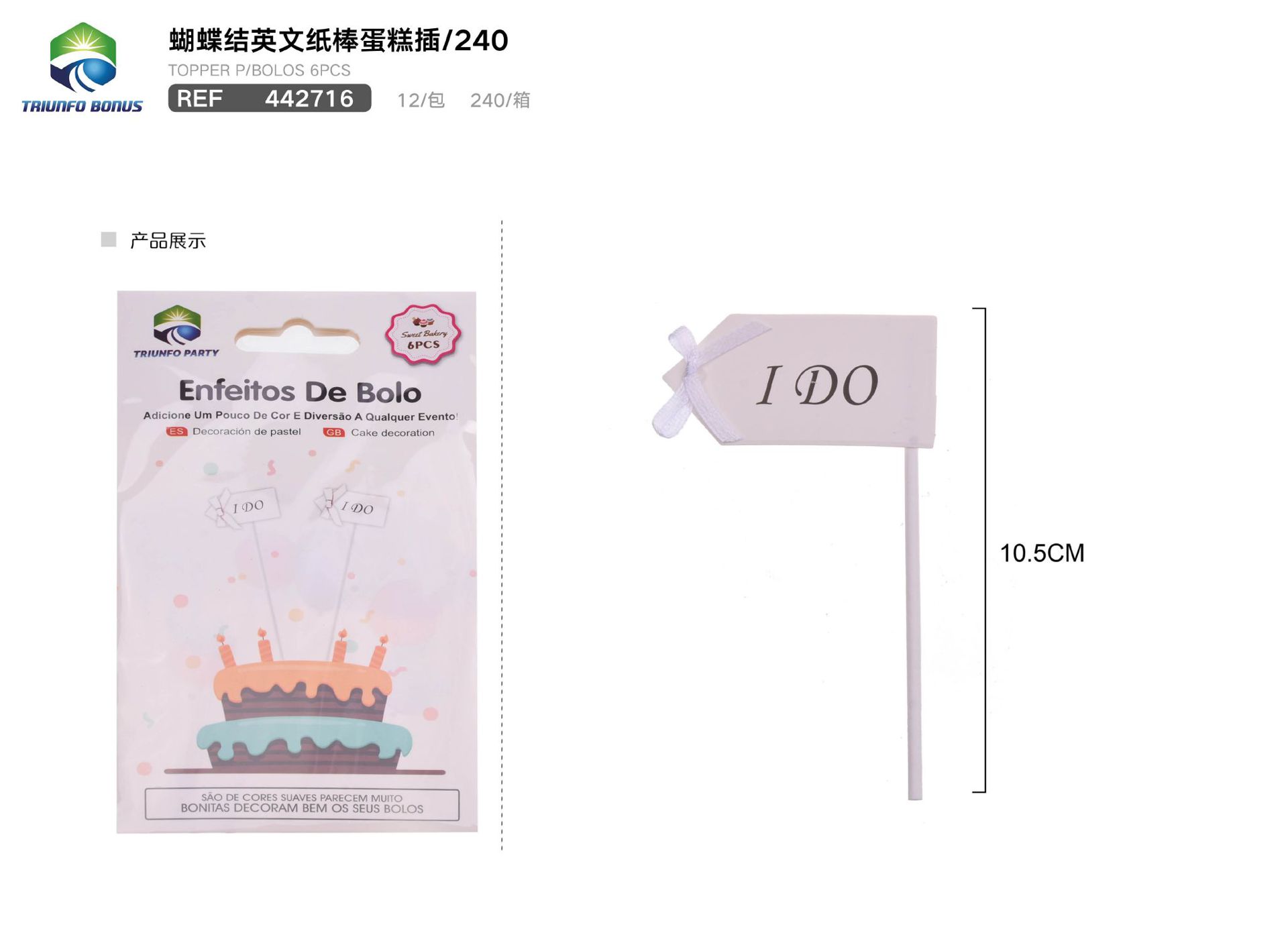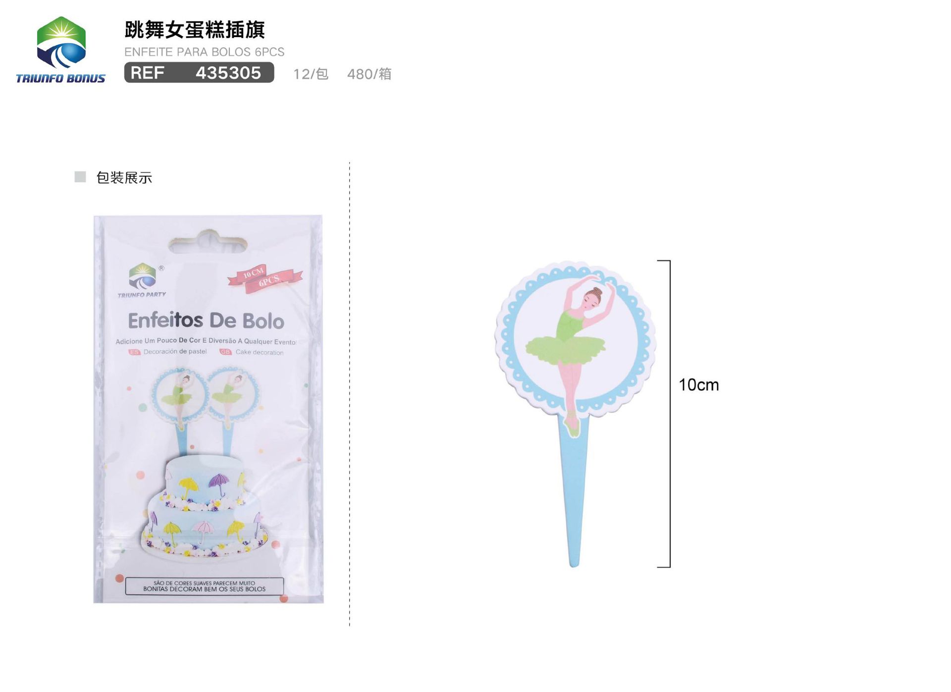 C.B. 5606858435305ENFEITE PARA BOLOS 6PCS