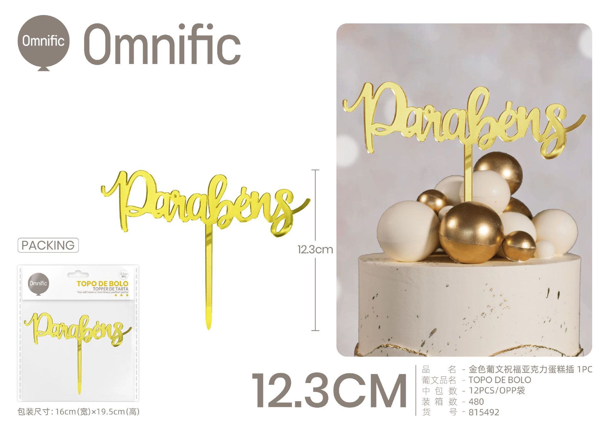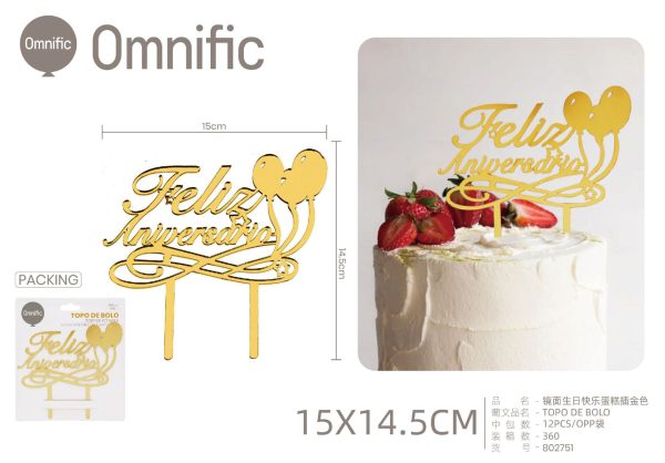C.B. 5600936802751TOPO DE BOLO ACRILICO DOURADO ESCURO F.ANIVERSARIO