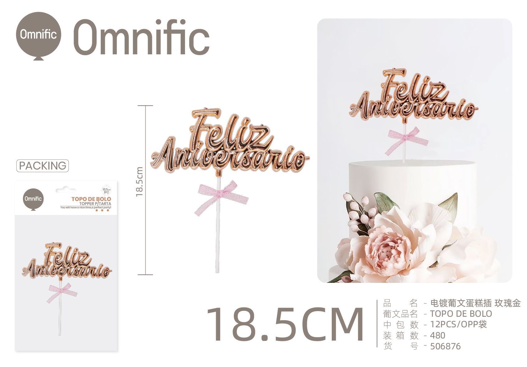 C.B. 5606858506876TOPO DE BOLO F.ANIVERSARIO ROSA DOURADO